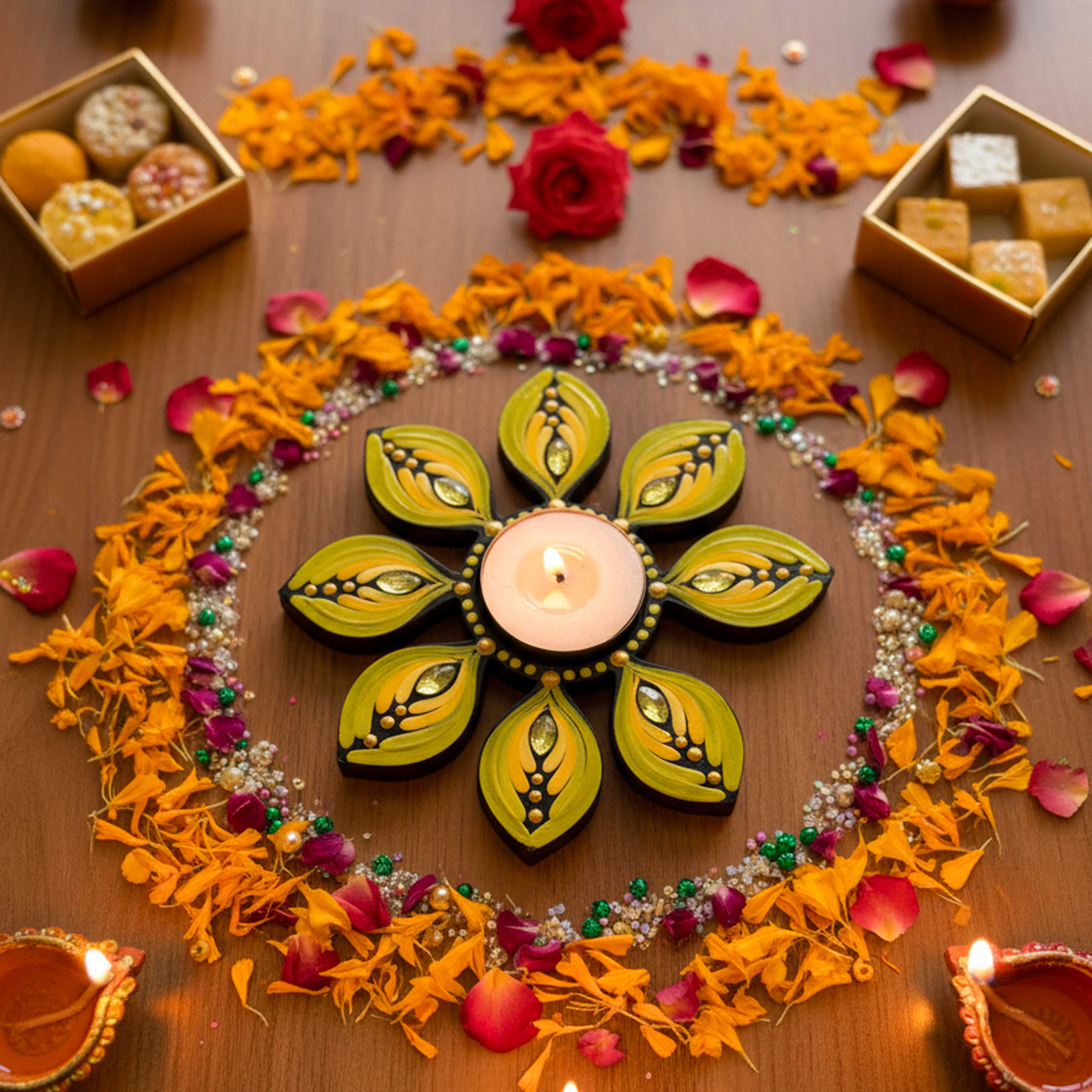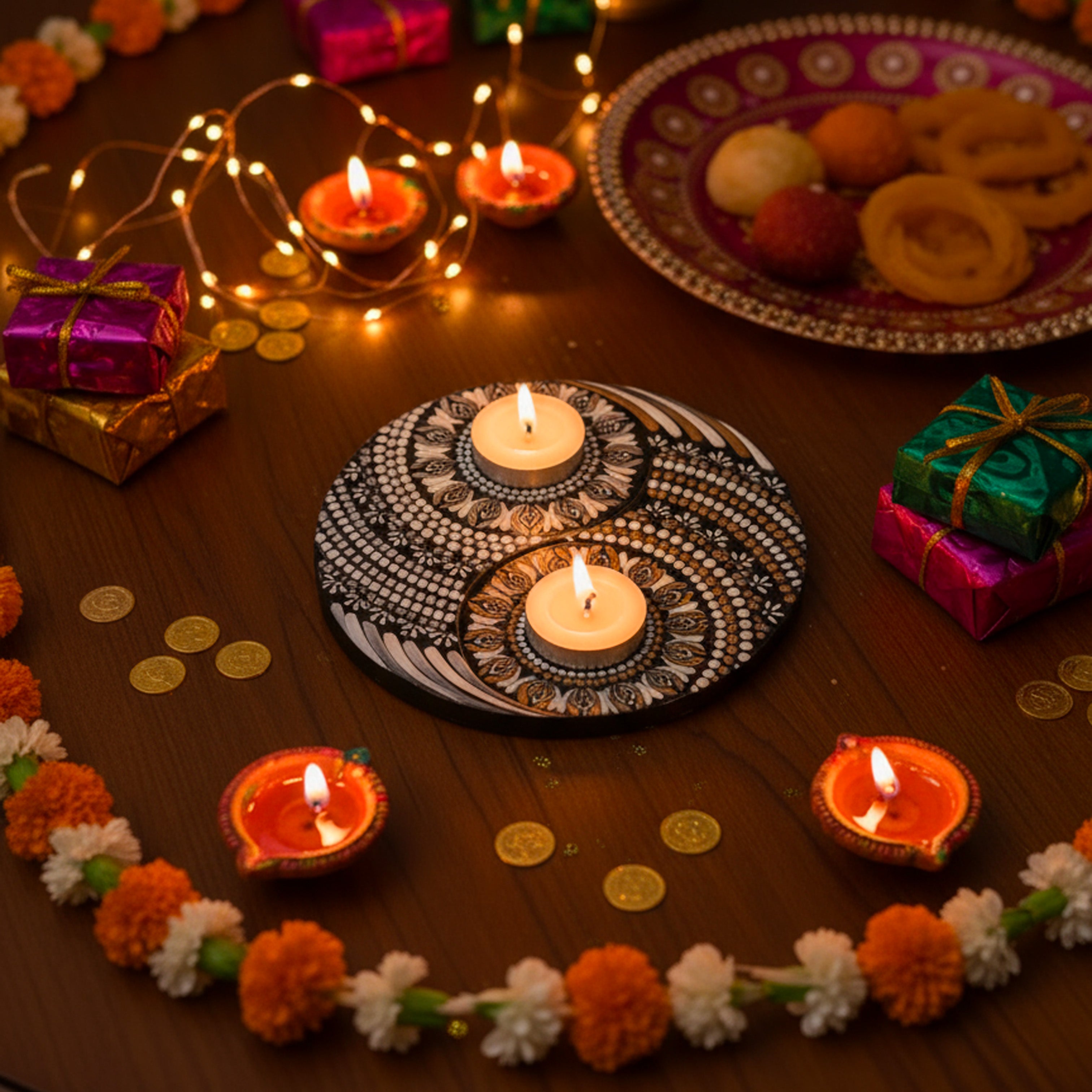 Step into Nartika’s Christmas Collection a cosy world of hand-painted mandalas, festive colors and heartfelt gifting. From twinkling tealights, table decor to ornaments, every piece is crafted to bring warmth, love and a little magic to your home this holiday season.
