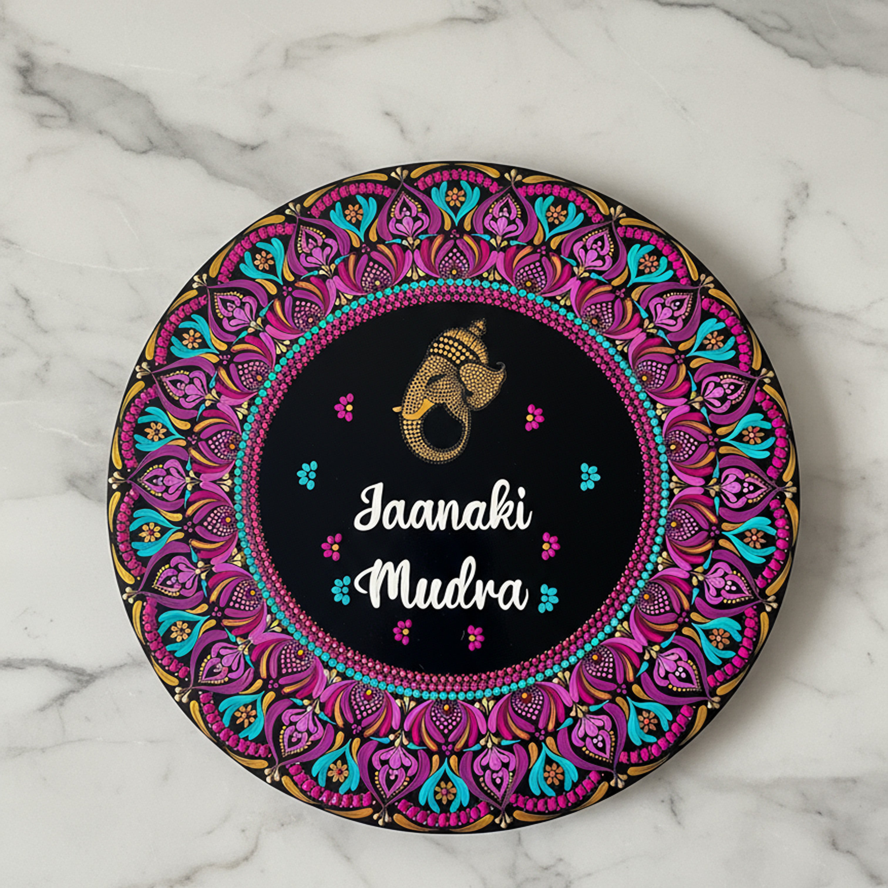 Discover our Mandala Dot Art Nameboards: A fusion of traditional hand-painted artistry with contemporary design. Each piece uniquely captures the essence of mandala, making entrances memorable.