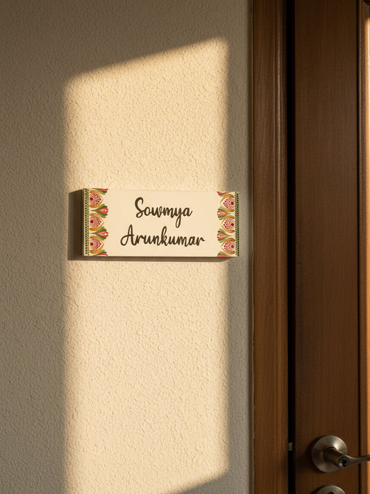 Elegant Cutwork Wooden Name Board with Ganesha Symbol