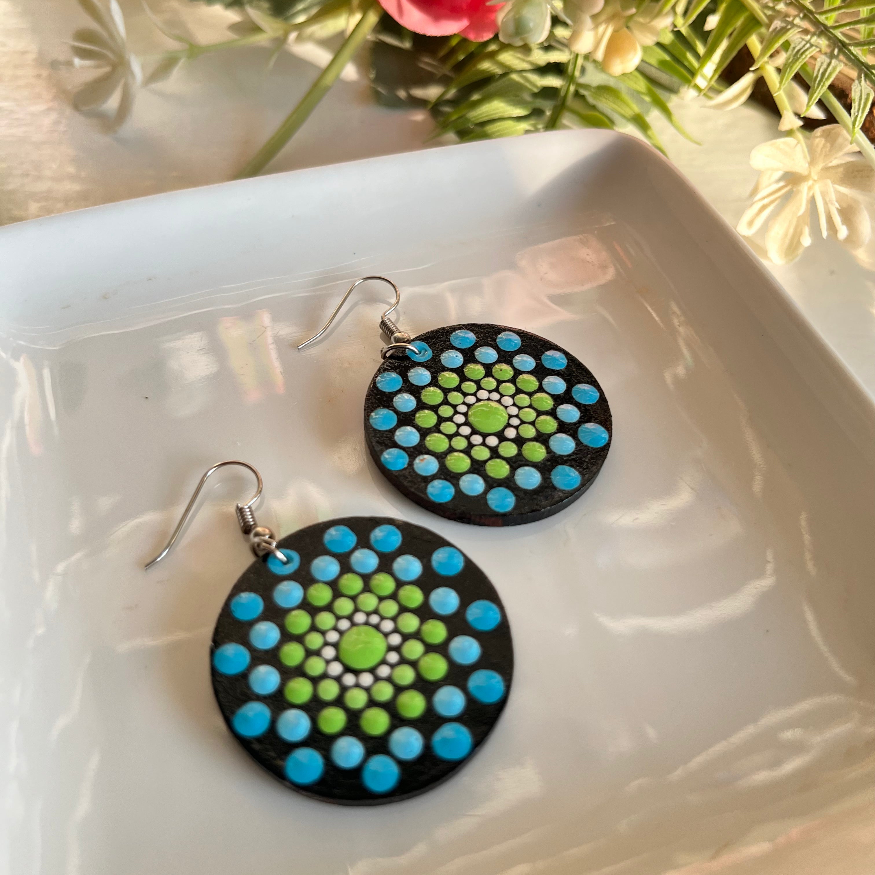 Vibrant Owl Mandala Earrings – Handpainted Boho Charm