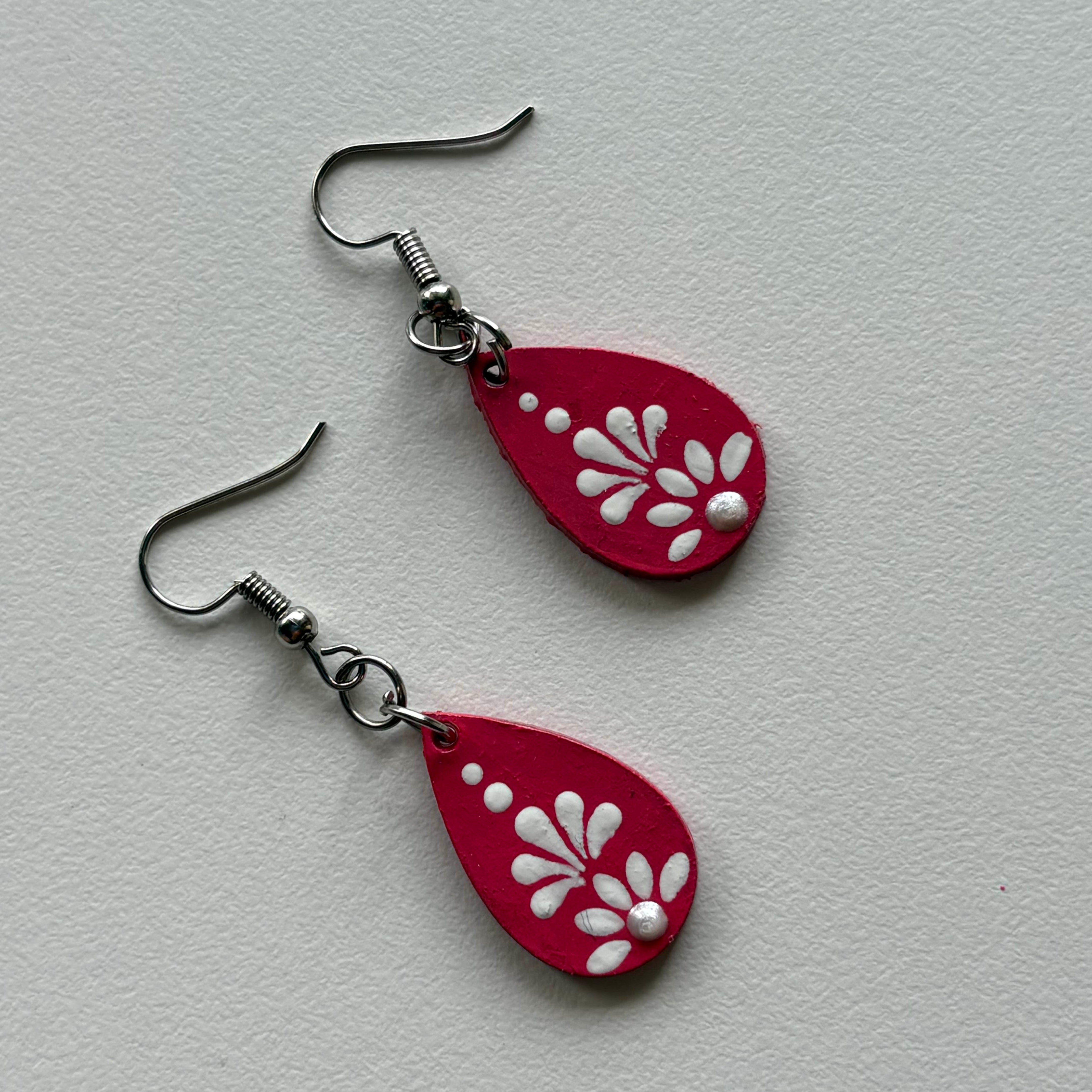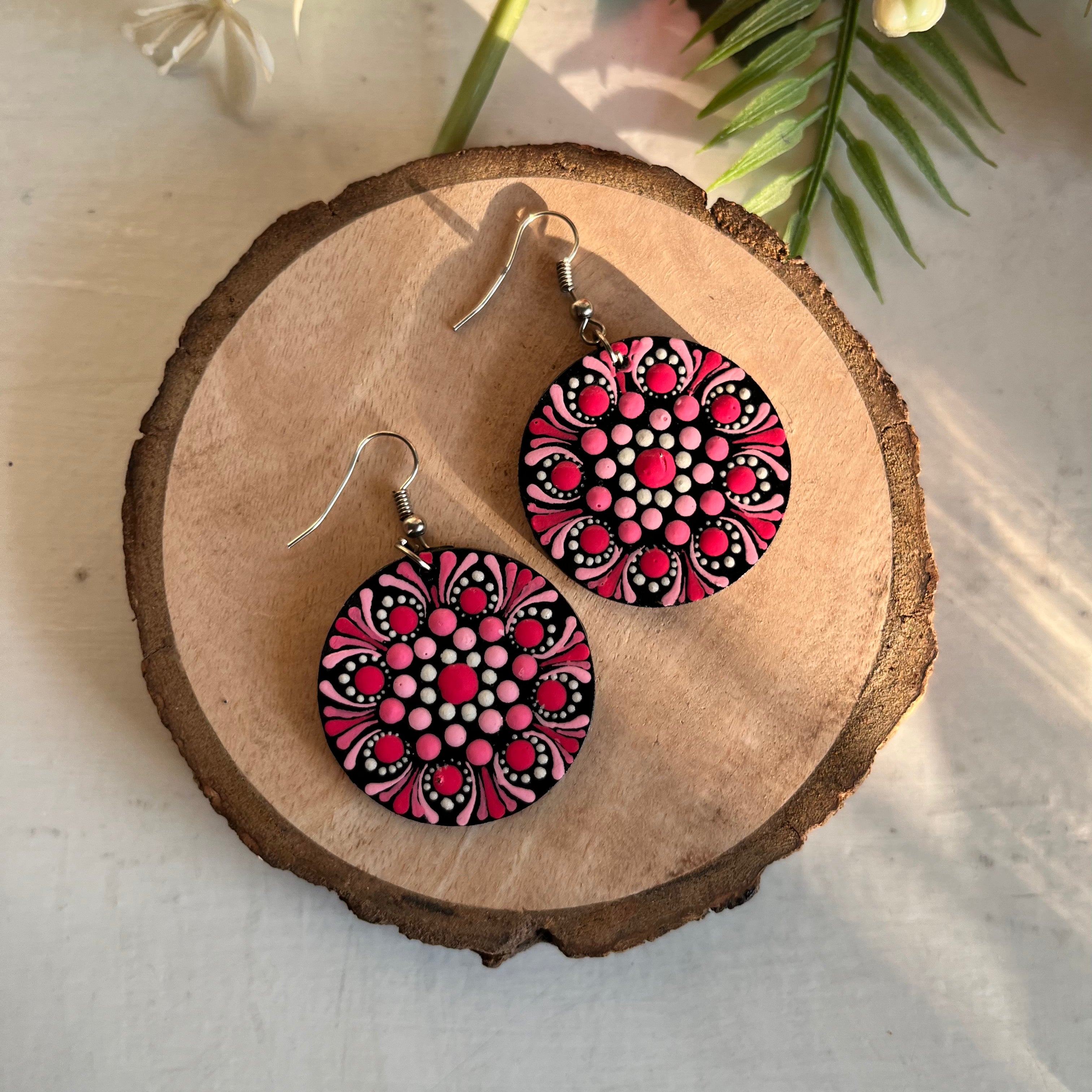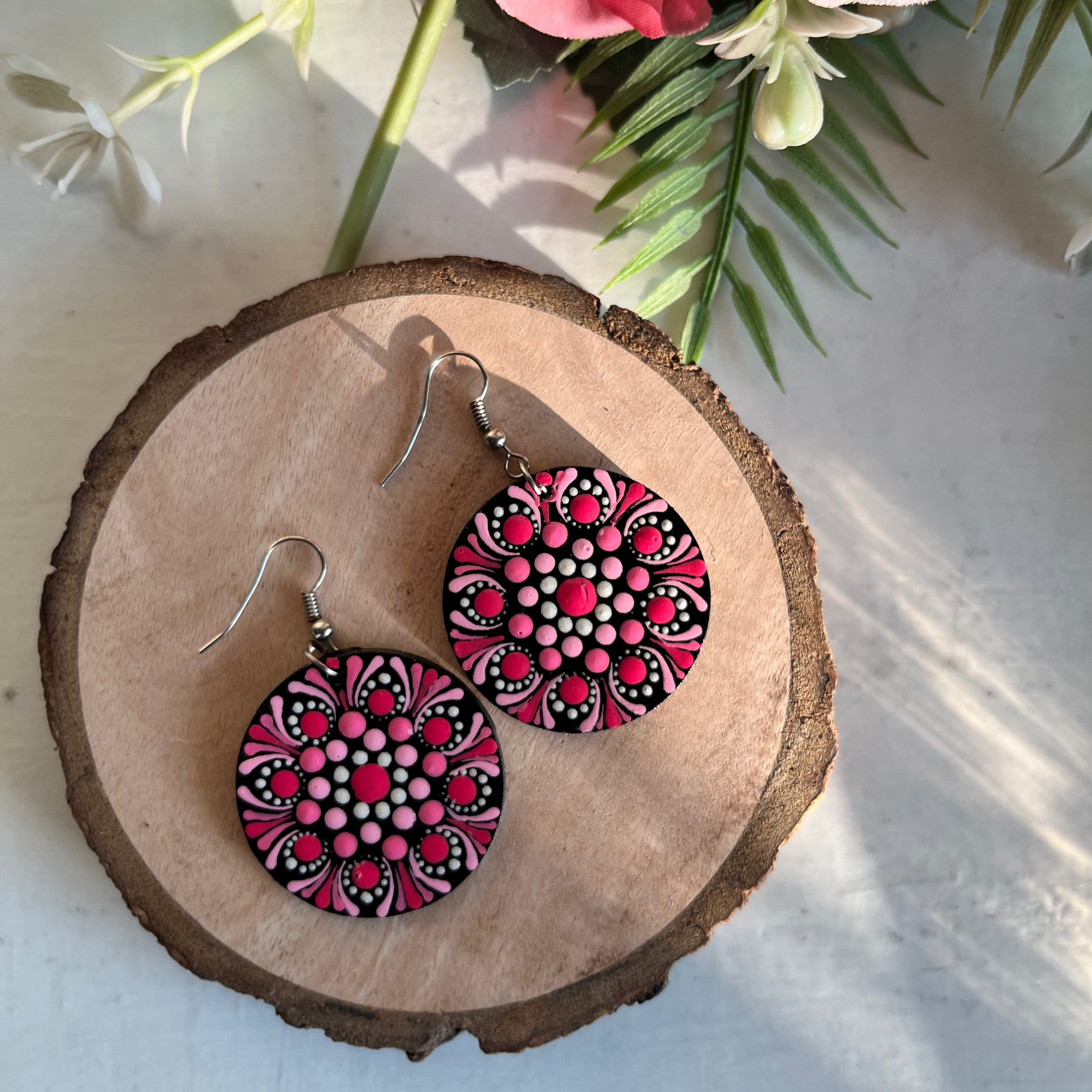 Pink Petal Drop Earrings – Handpainted Minimal Mandala Elegance