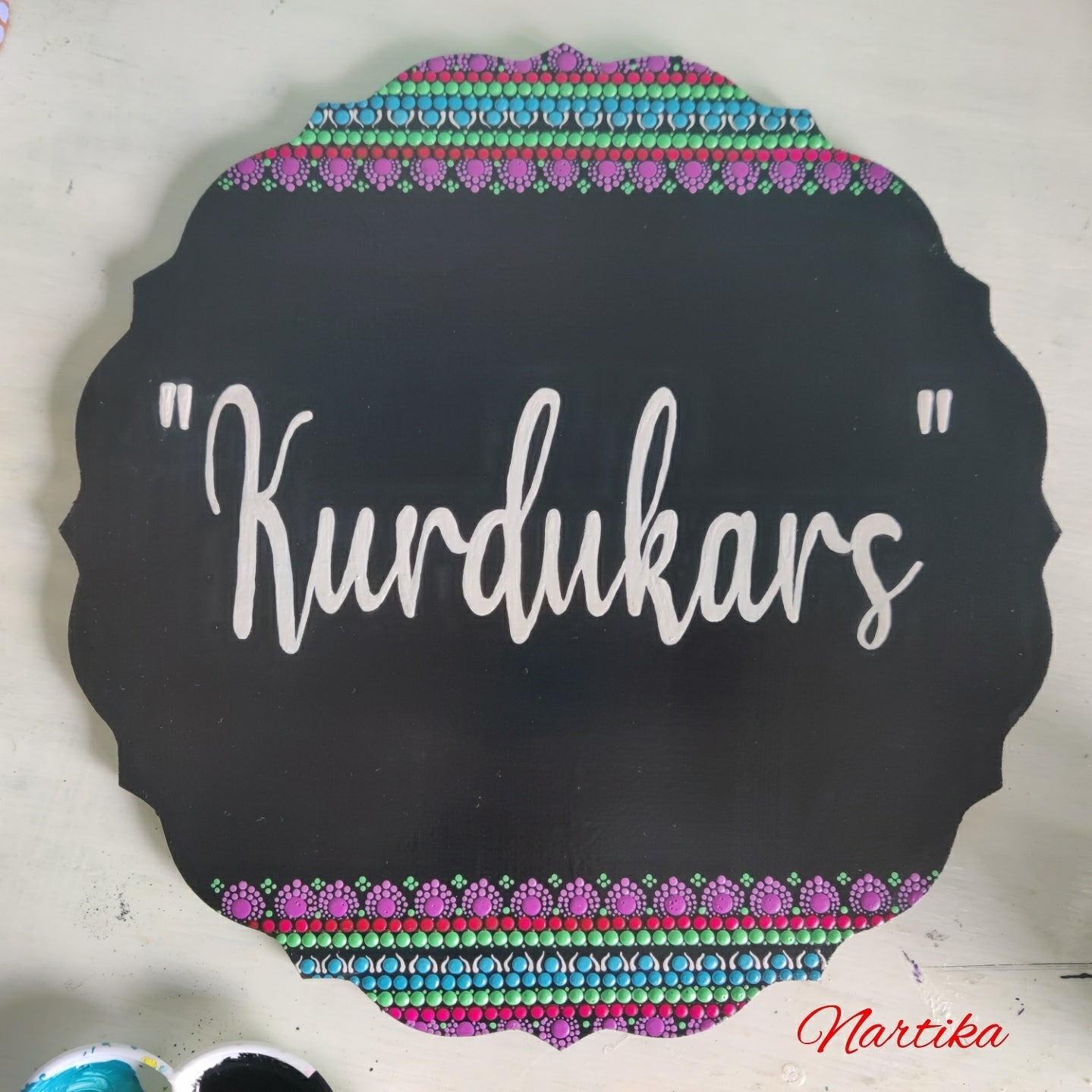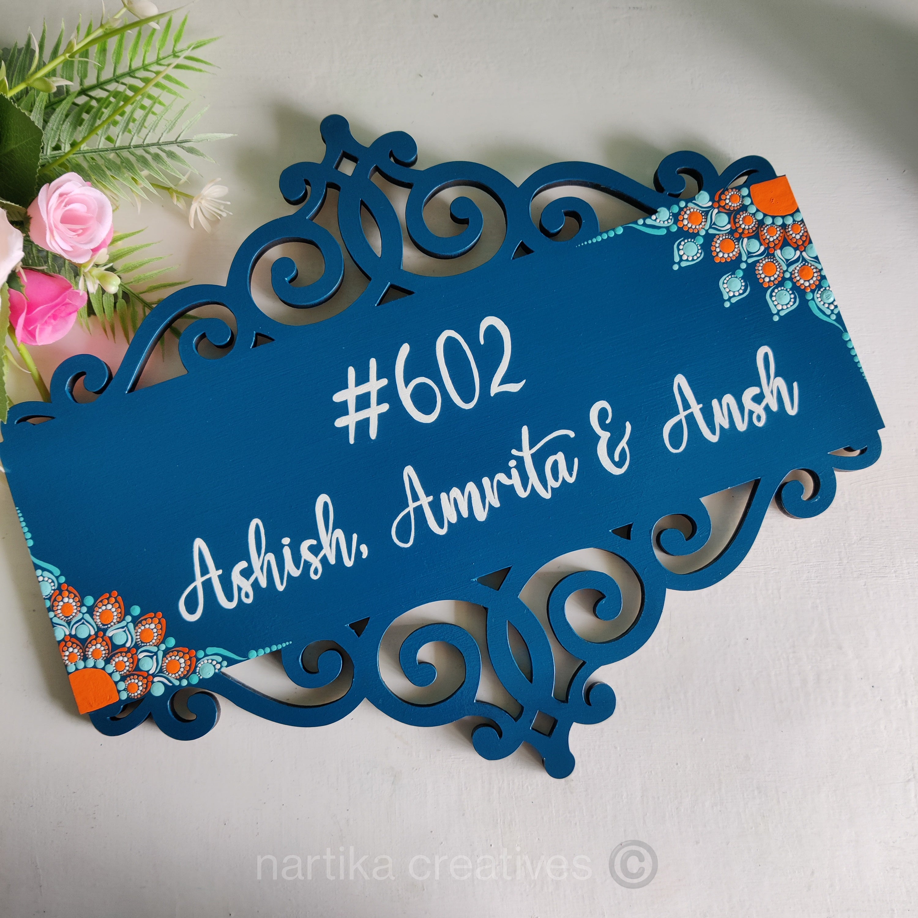 Turquoise Lotus Semi- Dot Mandala Cutwork Nameplate – Hand painted