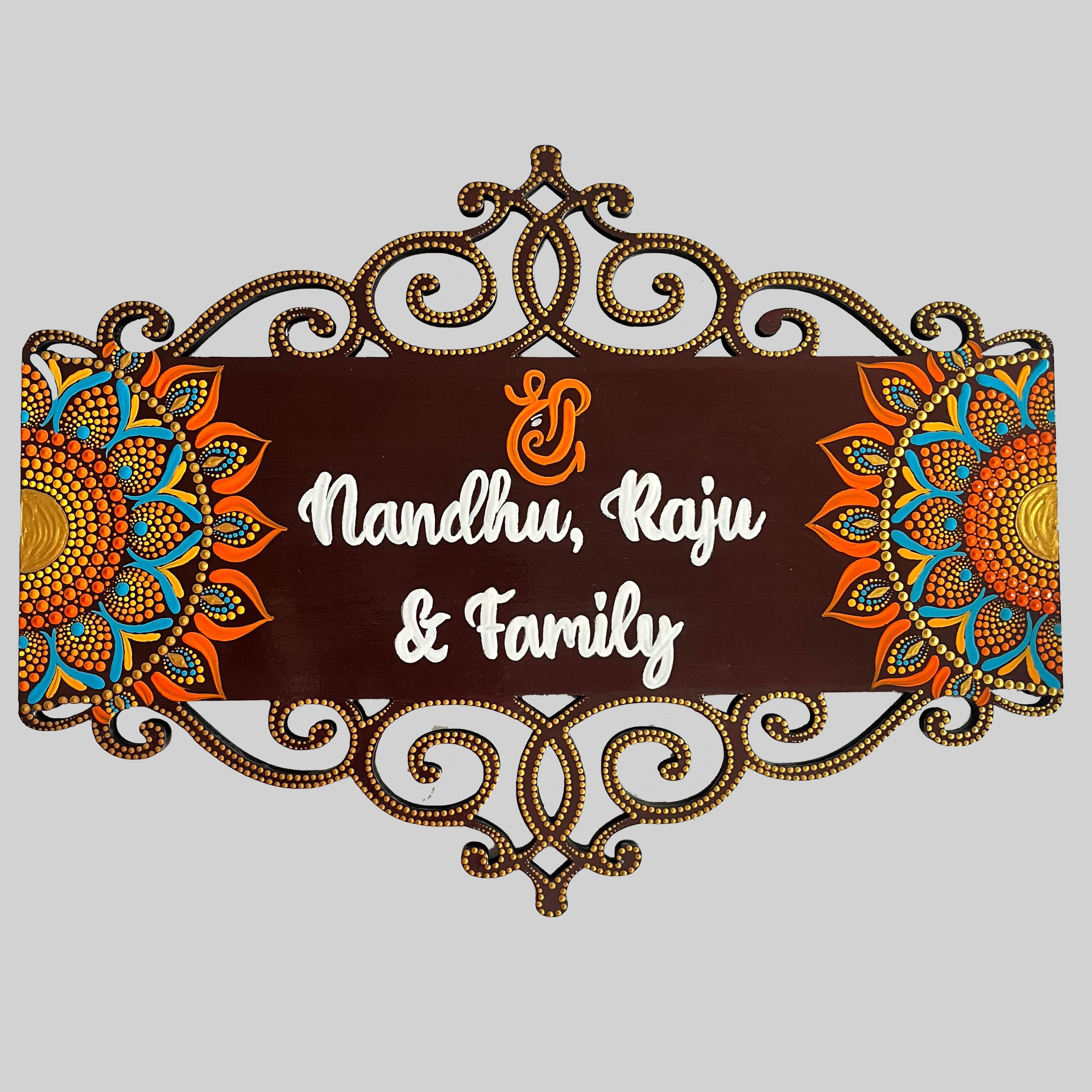 Elegant Cutwork Wooden Name Board with Ganesha Symbol