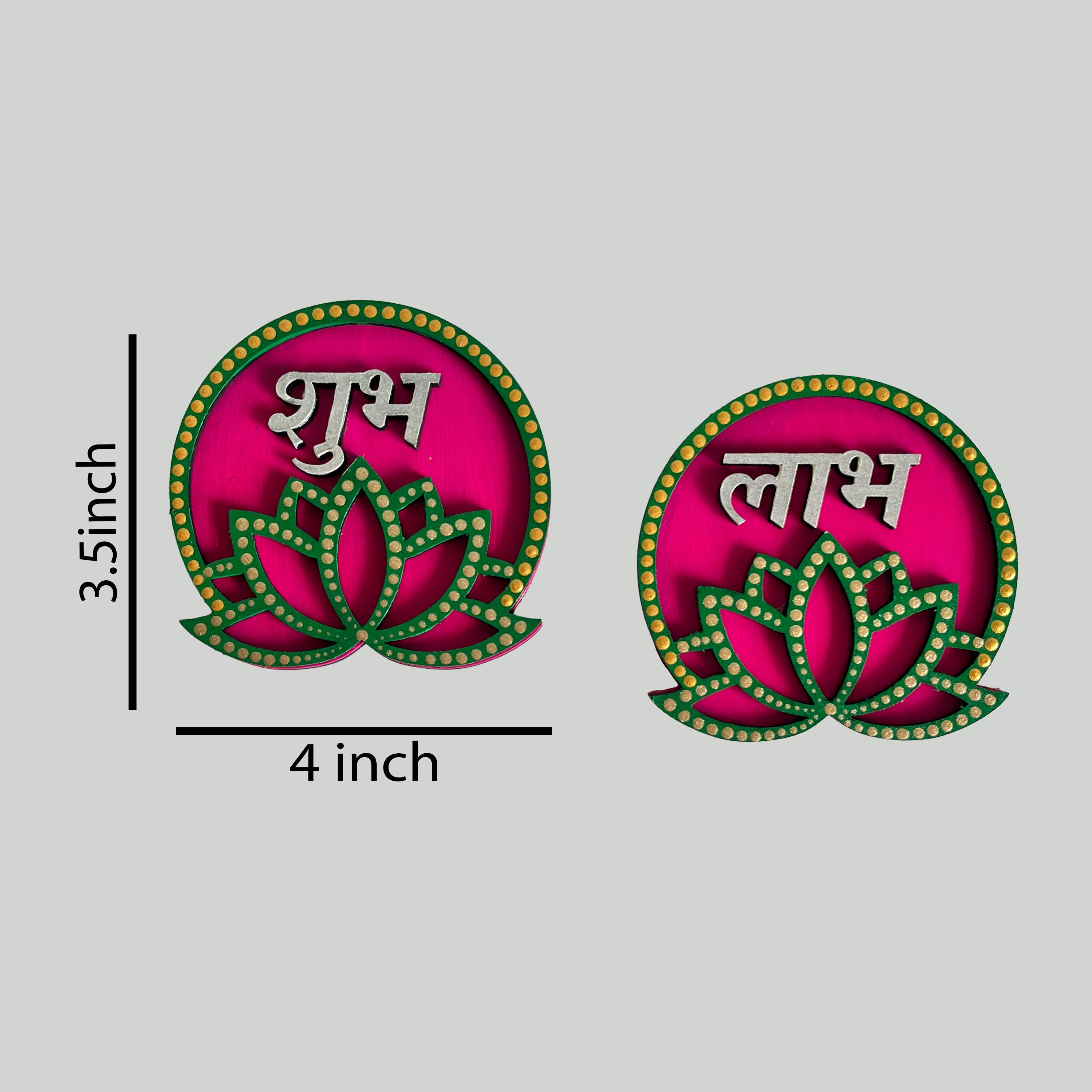 Handpainted Shubh Labh Wall Hanging – Lotus Design in Pink & Green (Approx. 4 Inch)