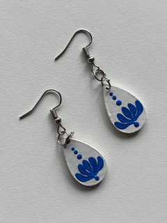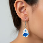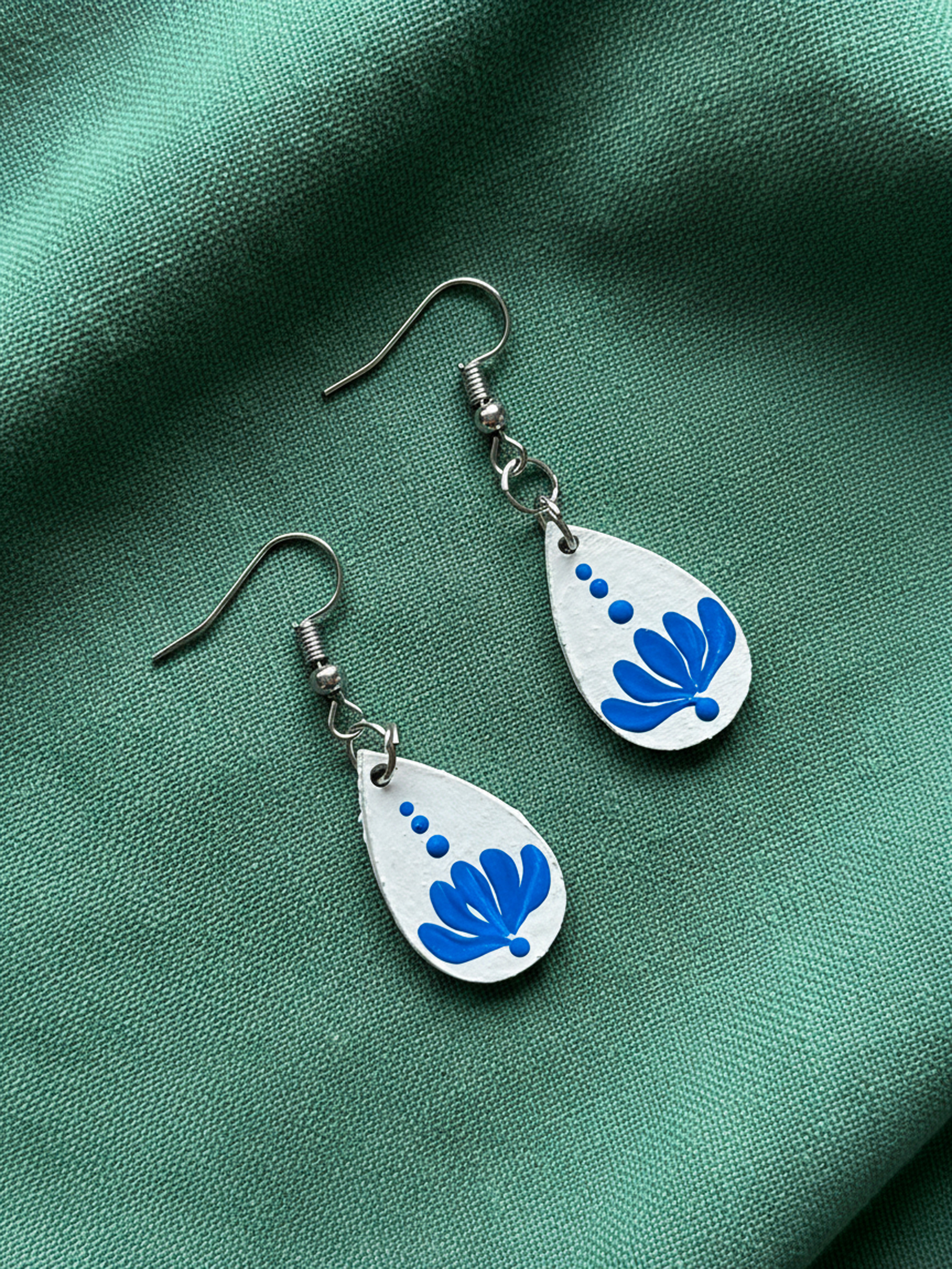 Blue Blossom Teardrop Earrings – Minimal Handpainted Mandala Charm