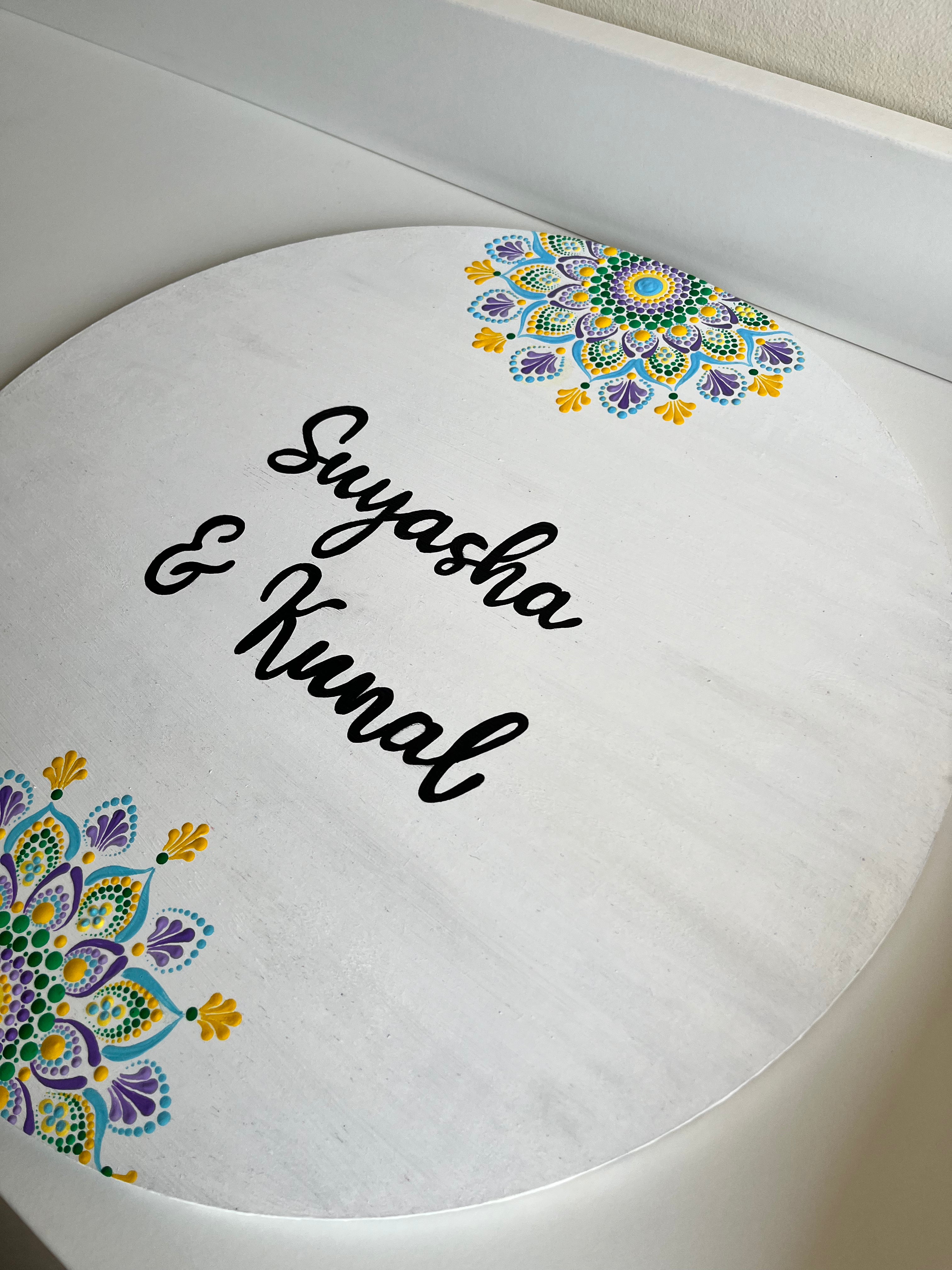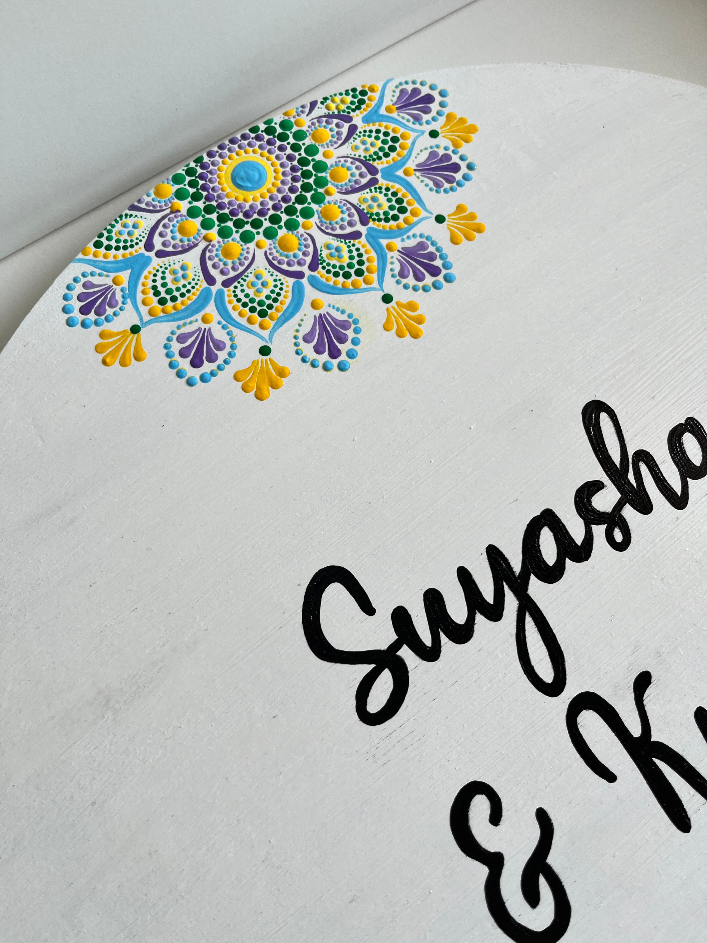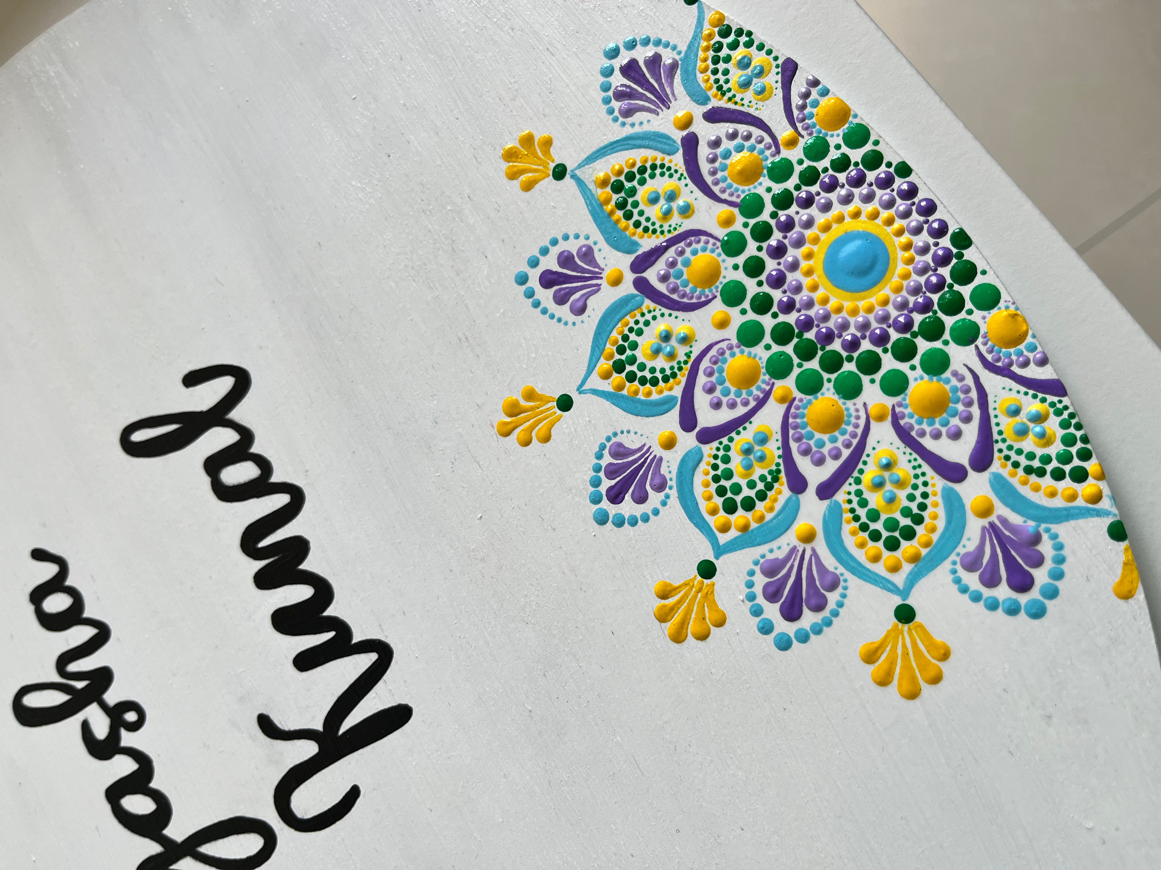 Pastel Floral Dot Mandala Round Nameplate – 16 Inch – Hand-painted Personalized Door/Wall Sign