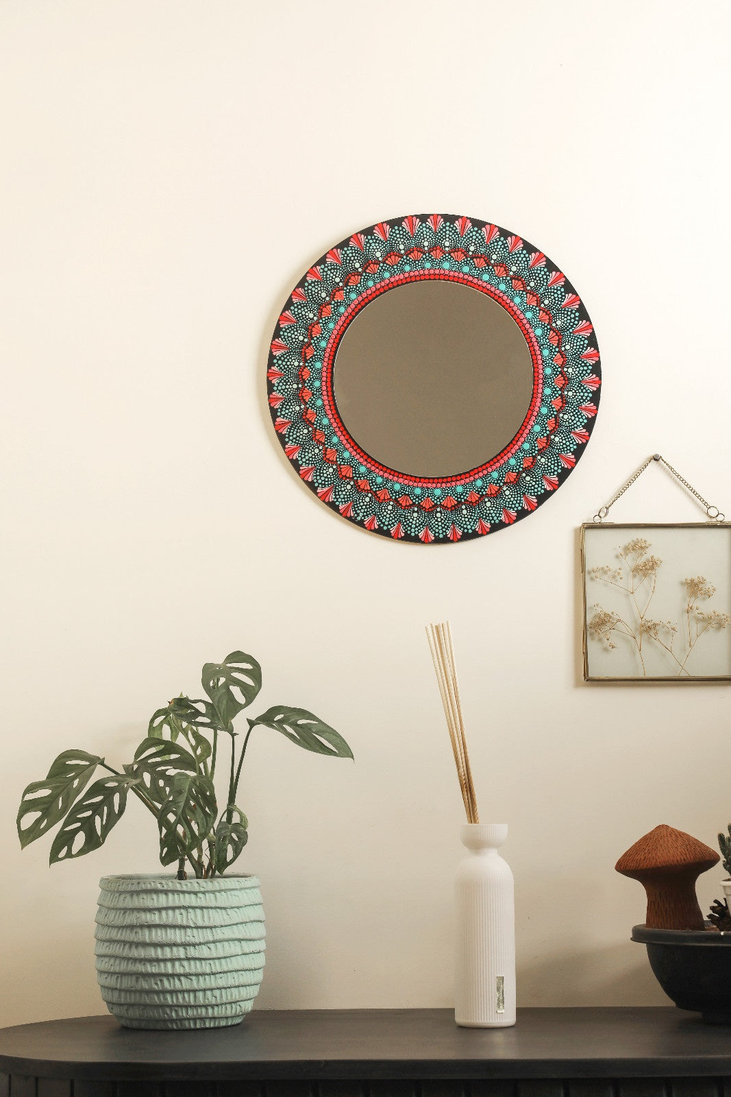 Each dot is placed with mindful precision, forming graceful layers of petal-like motifs that add rhythm, harmony, and personality to your wall. Perfect for bedrooms, living rooms, entryways, or creative corners, this mirror blends functionality with artistic expression — instantly uplifting any home with its joyful color palette and handcrafted detailing.