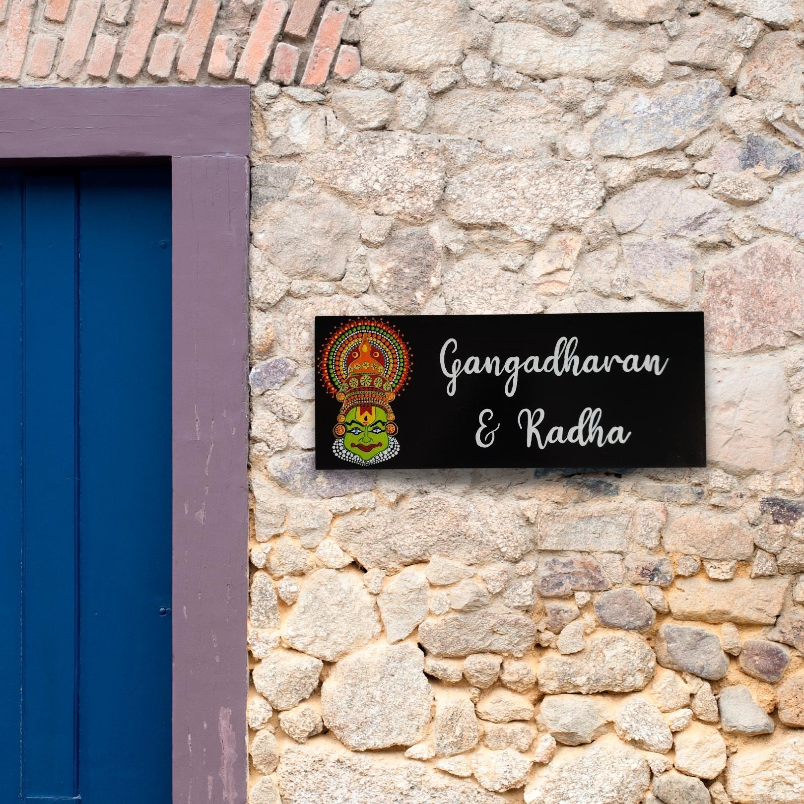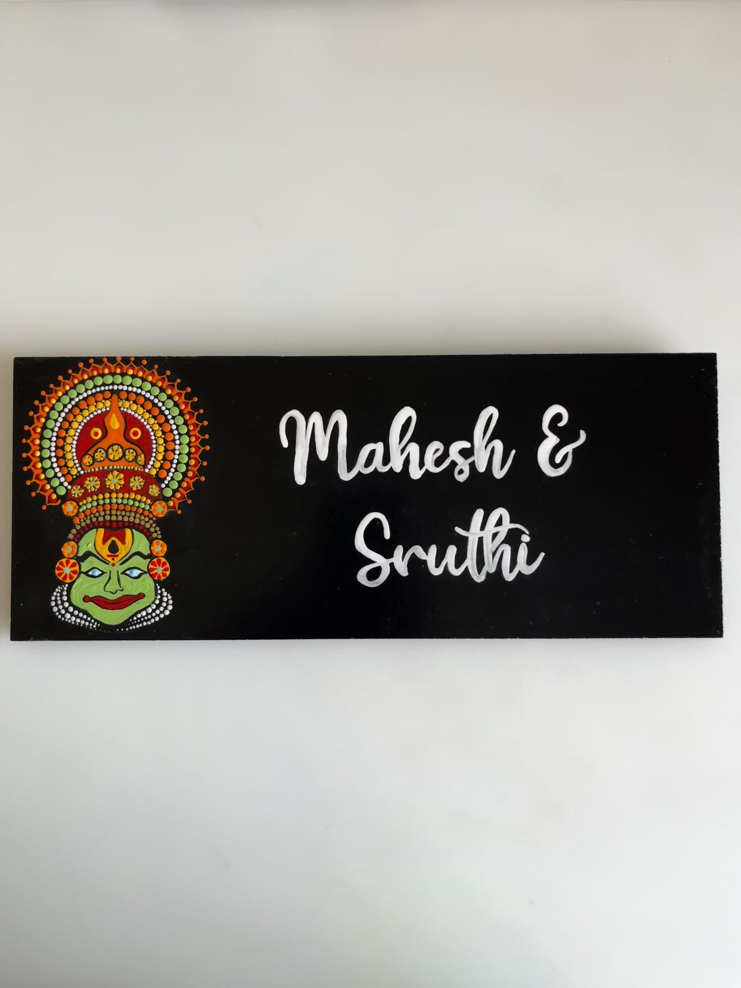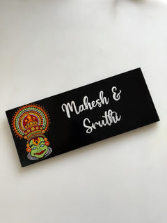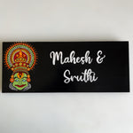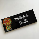 Perfect for lovers of South Indian heritage, this design can be personalized with your names in English, regional languages, or calligraphy styles of your choice. The protective varnish finish ensures durability, making it suitable for both indoor and covered outdoor use.