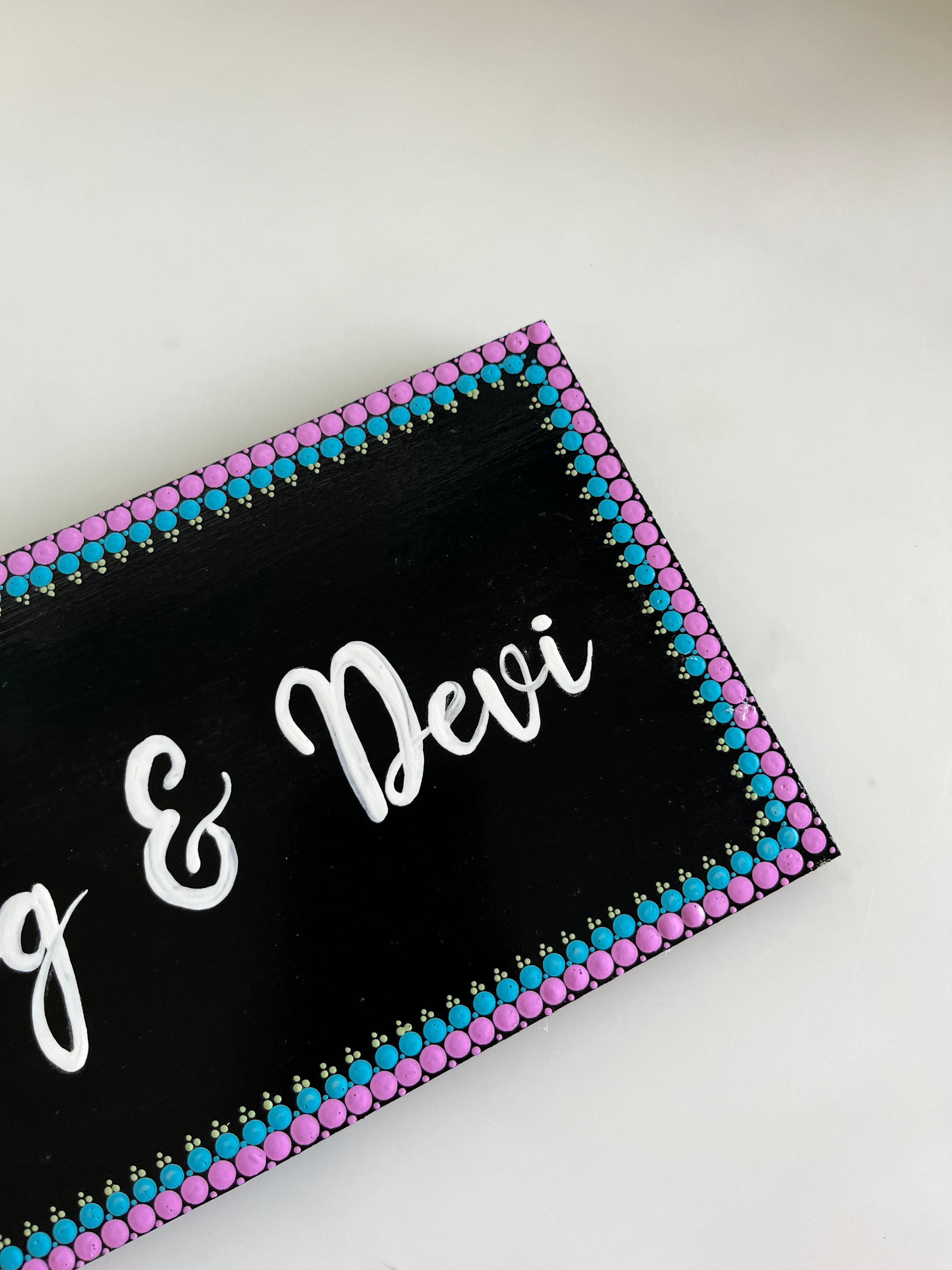 Perfect for apartment doors, studio spaces, or gifting, this 12 x 30 cm name board is fully customizable with your choice of names, fonts, and colors.
