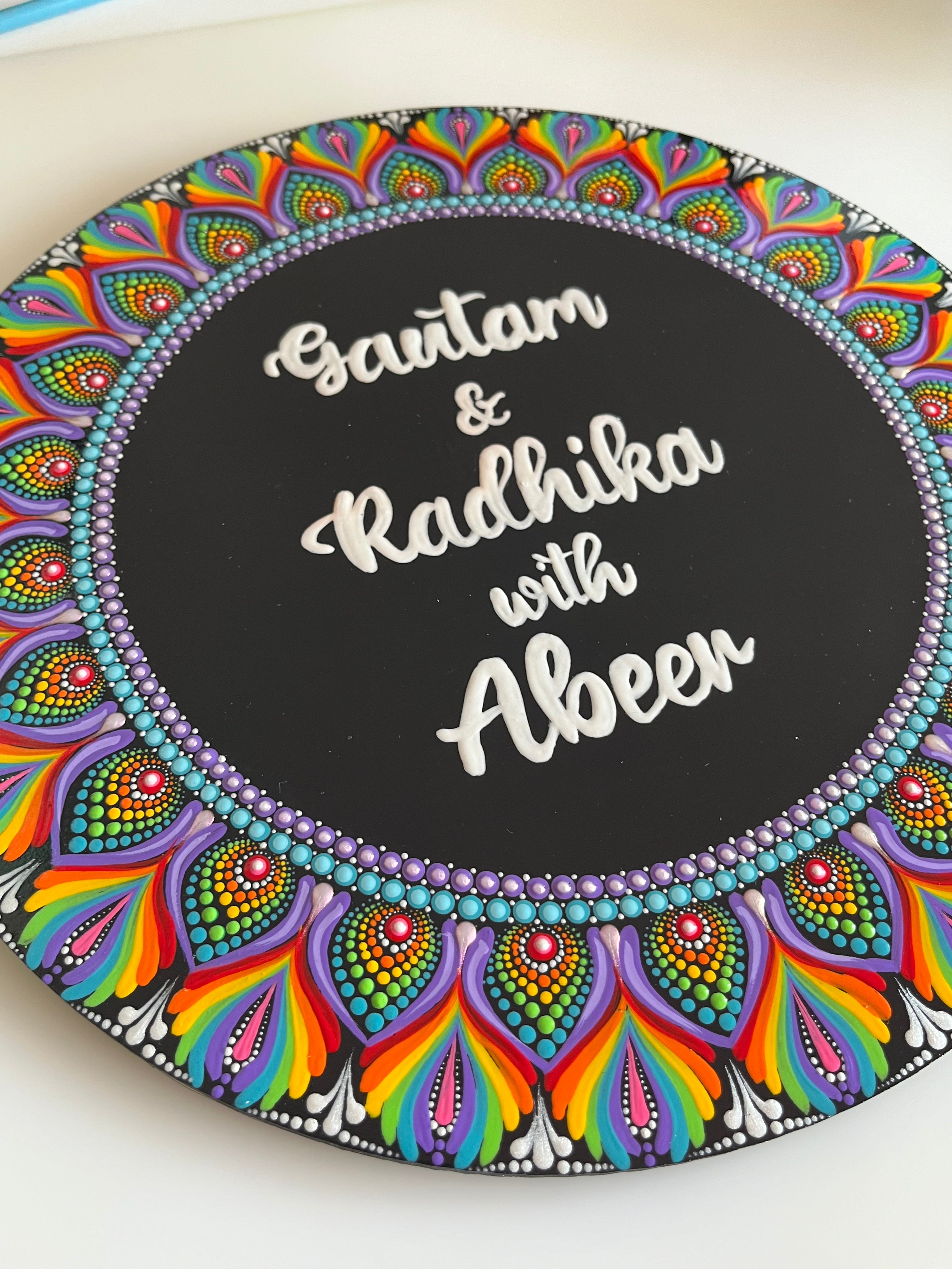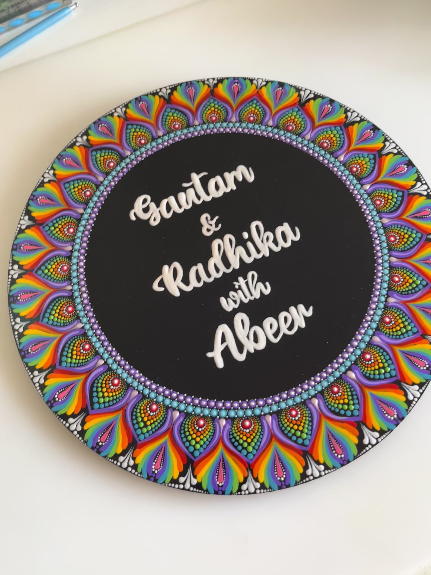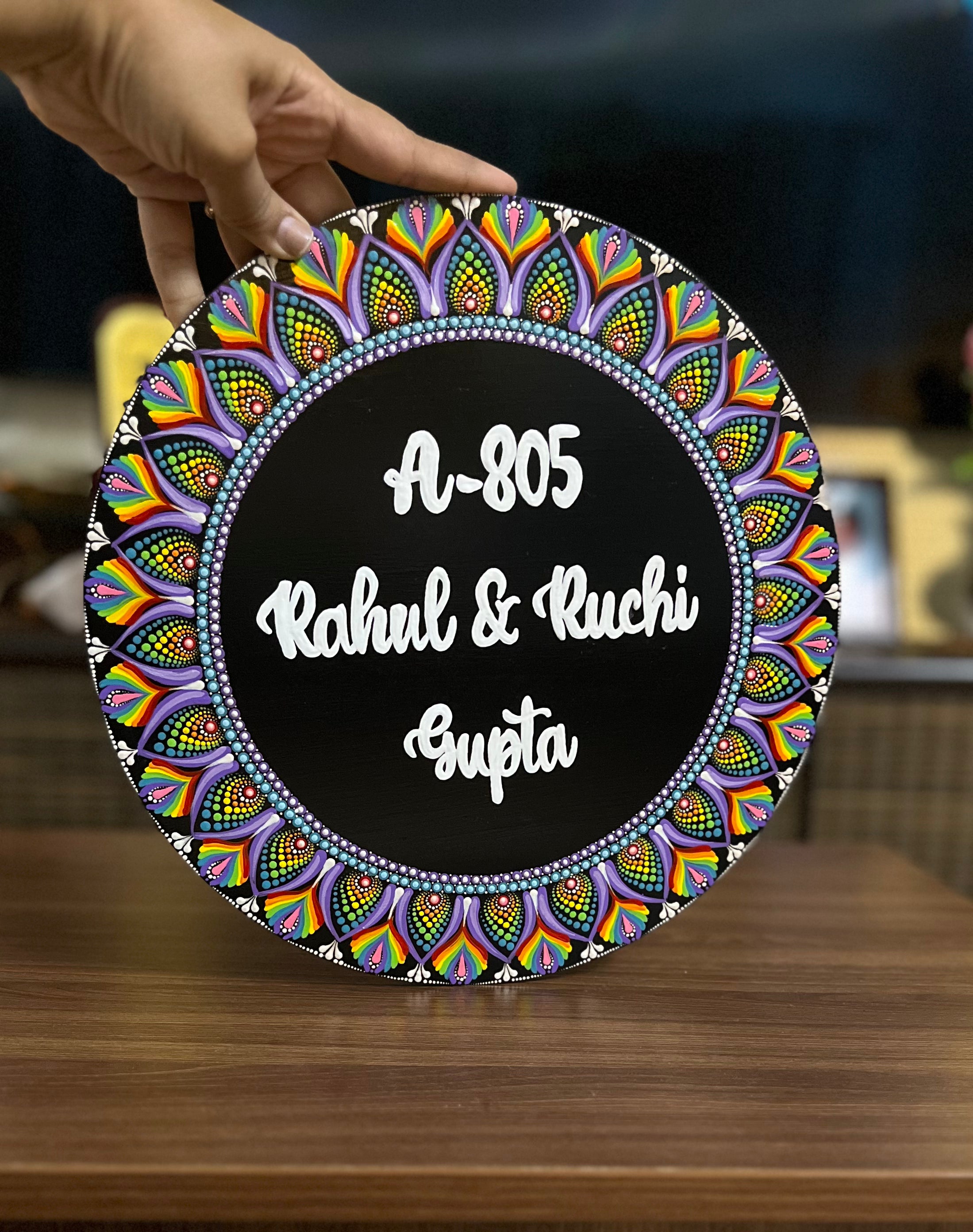 Perfect for housewarming gifts, weddings, anniversaries, or festive décor, this rainbow mandala nameplate is more than just a sign – it’s a piece of art that welcomes with warmth and style.