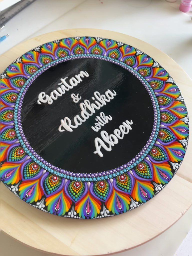 Rainbow Dot Mandala Circular Nameplate – 12 inch – Custom Hand-painted Door Plate