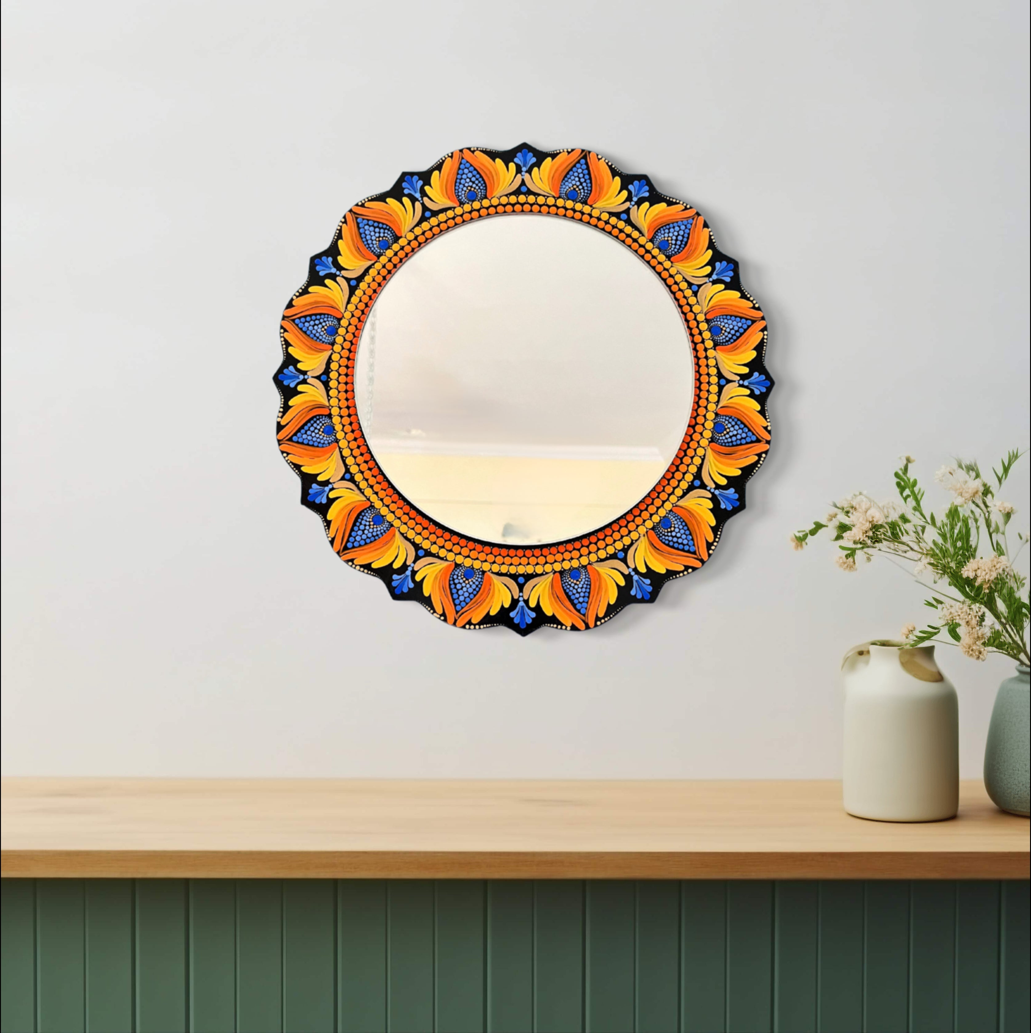 Dot Art Mandala Wall Decor - Mirror, Orange