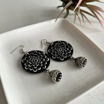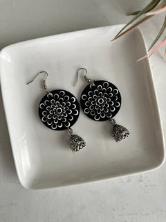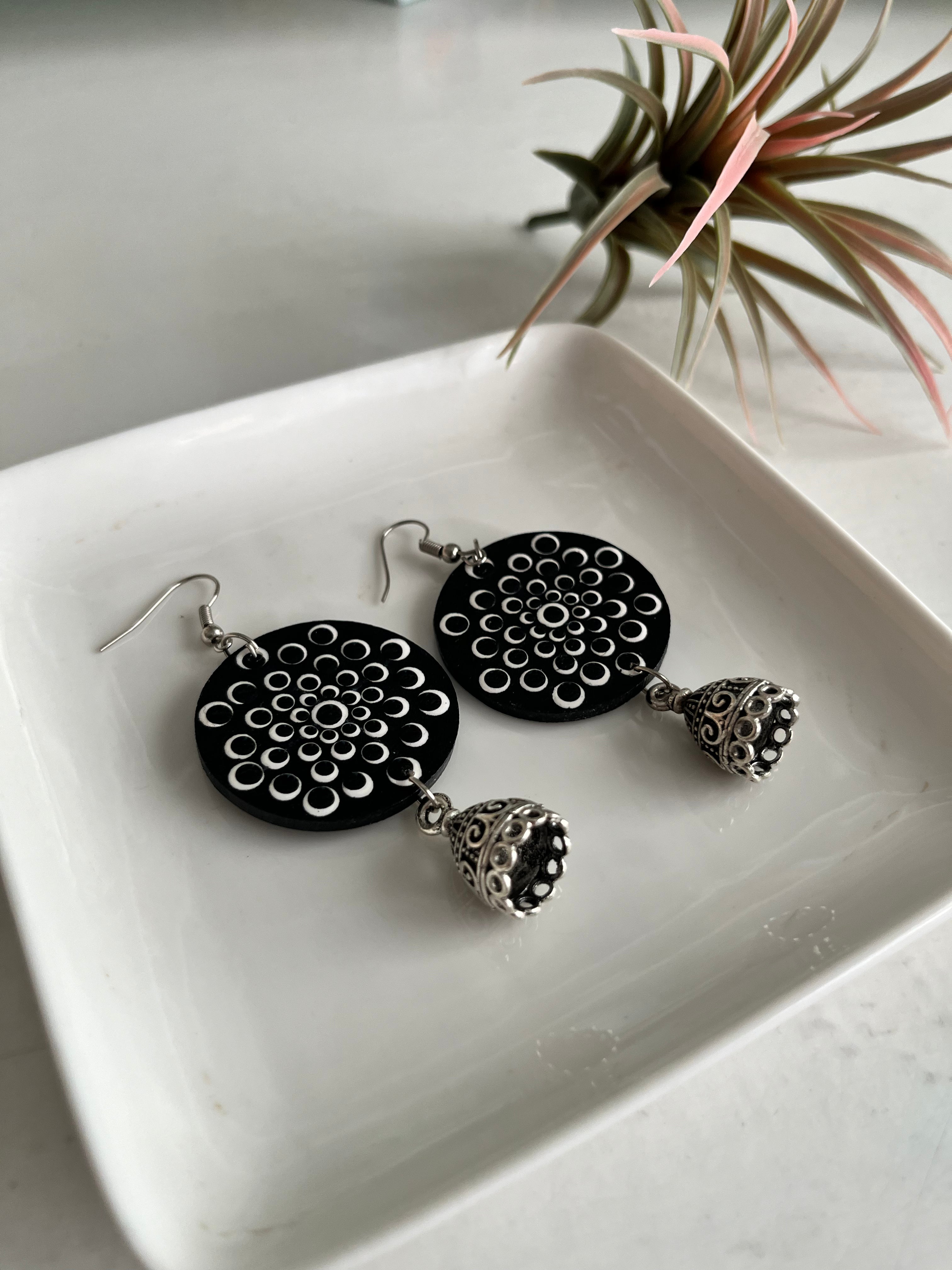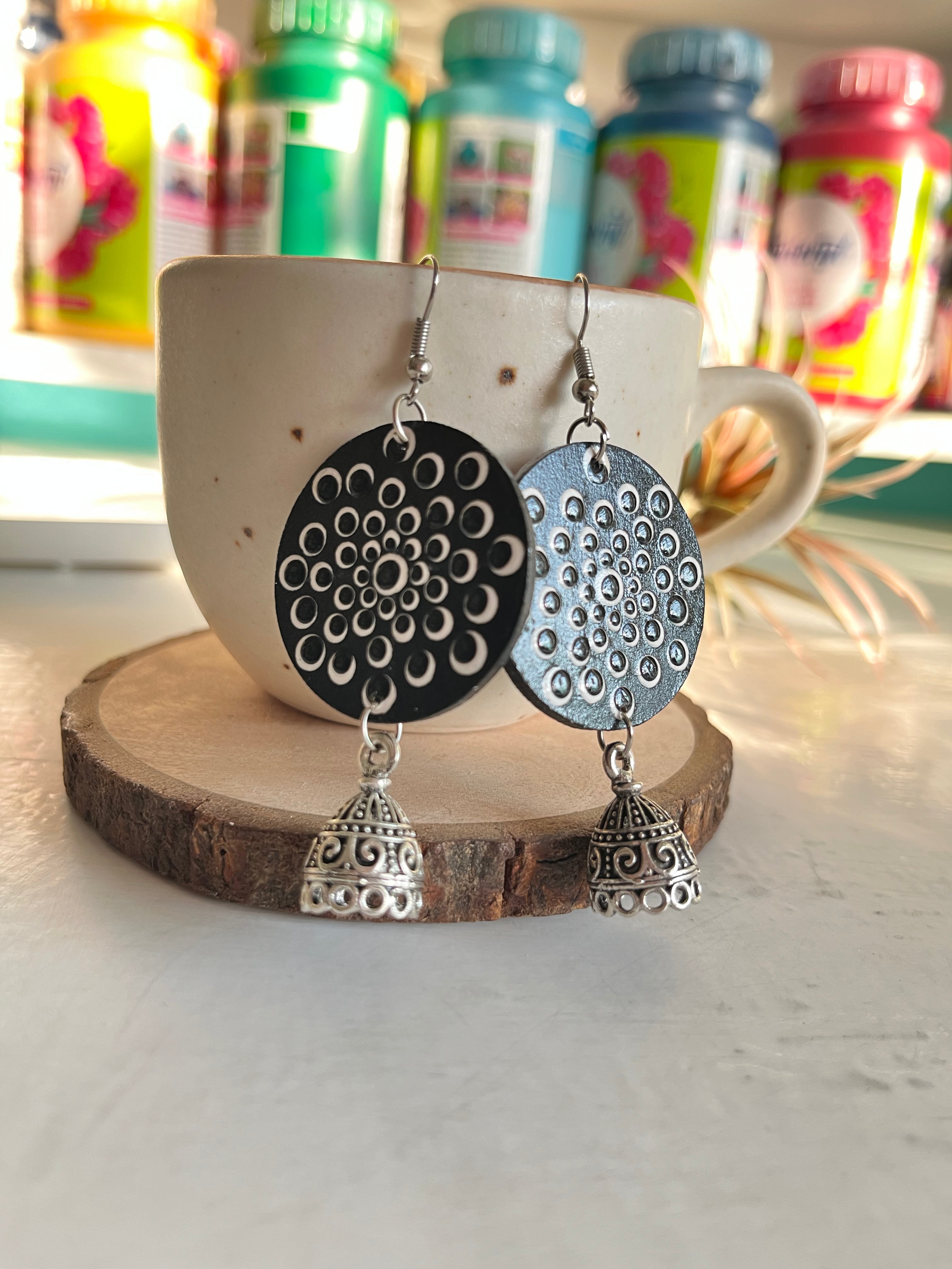 Discover the unique combination of traditional Mandala art and modern fashion with our Dot Mandala art Earning Round Jhumki Black! Made with expert precision and attention to detail, these earrings feature intricate dot patterns inspired by Mandala artwork. With their bold design and elegant style, these earrings are the perfect accessory for any occasion.