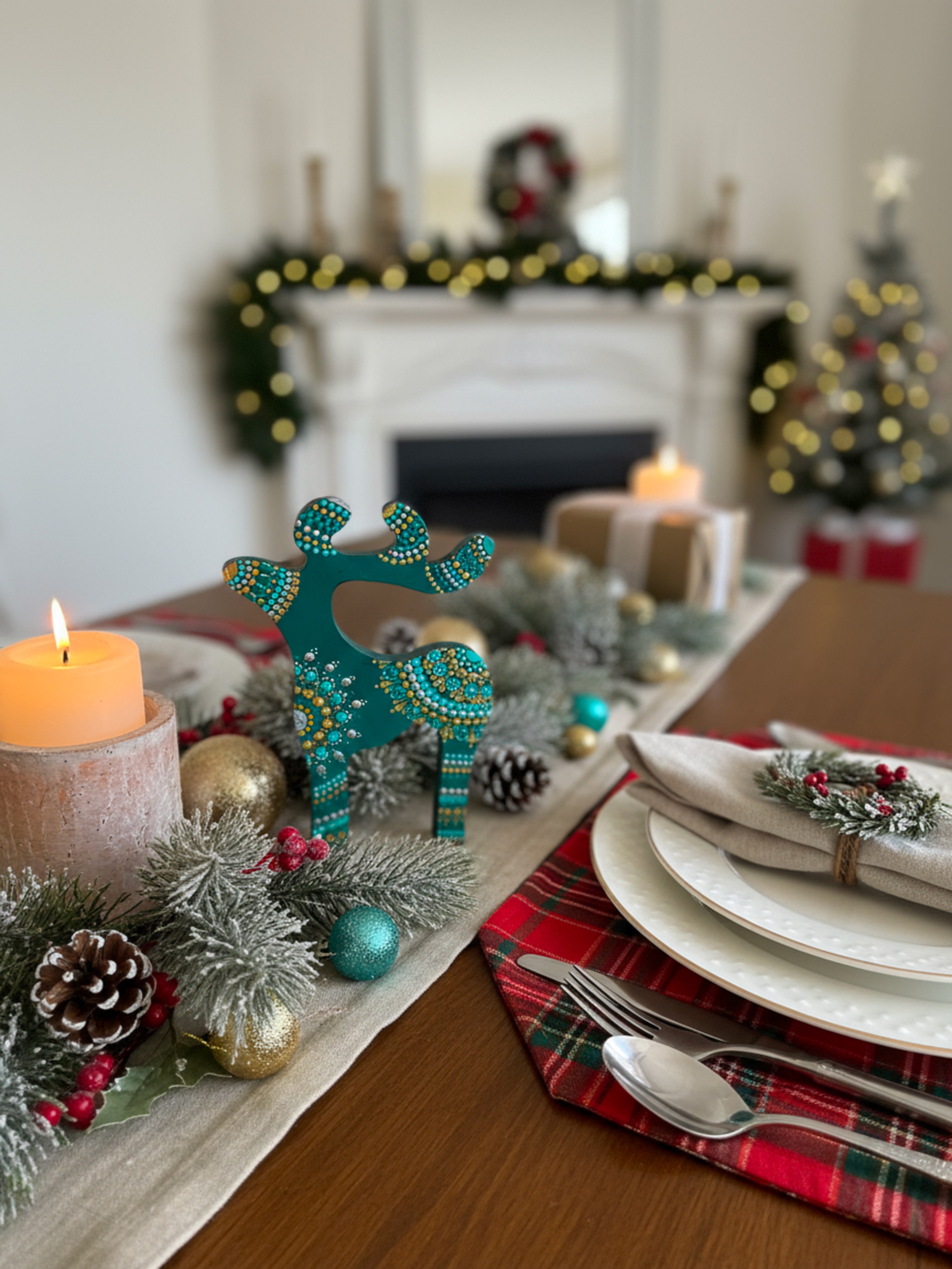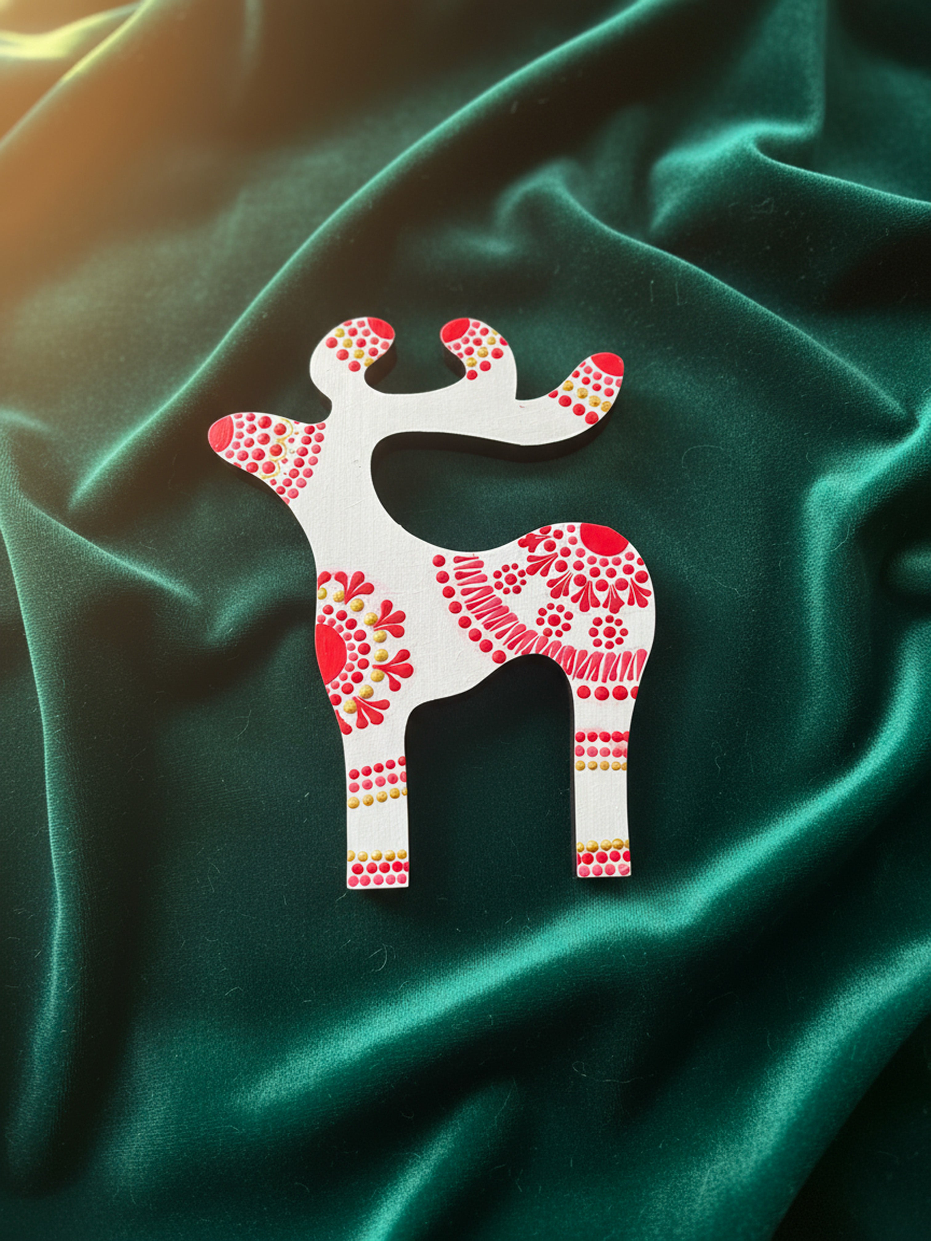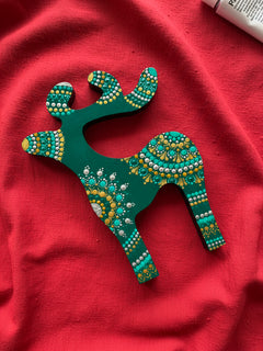 Bring home the charm of winter magic with the Emerald Reindeer, a handpainted mandala table décor that blends elegance, tradition, and festive spirit.