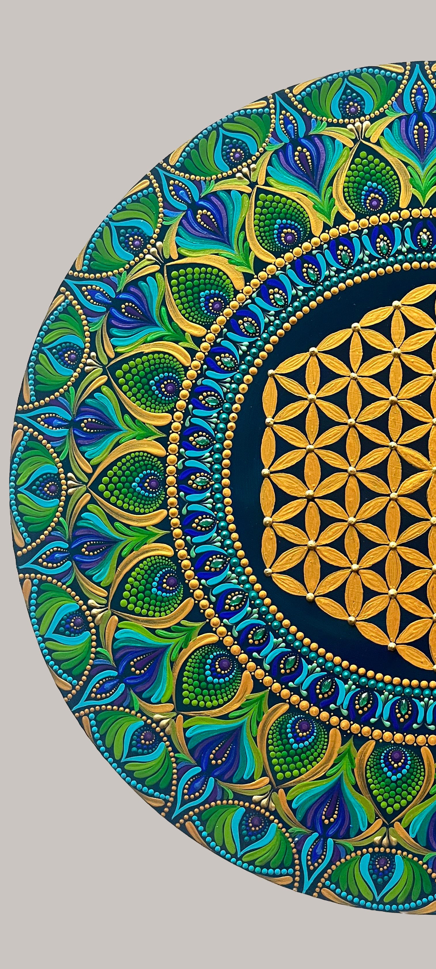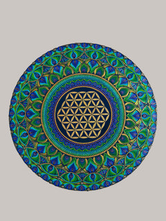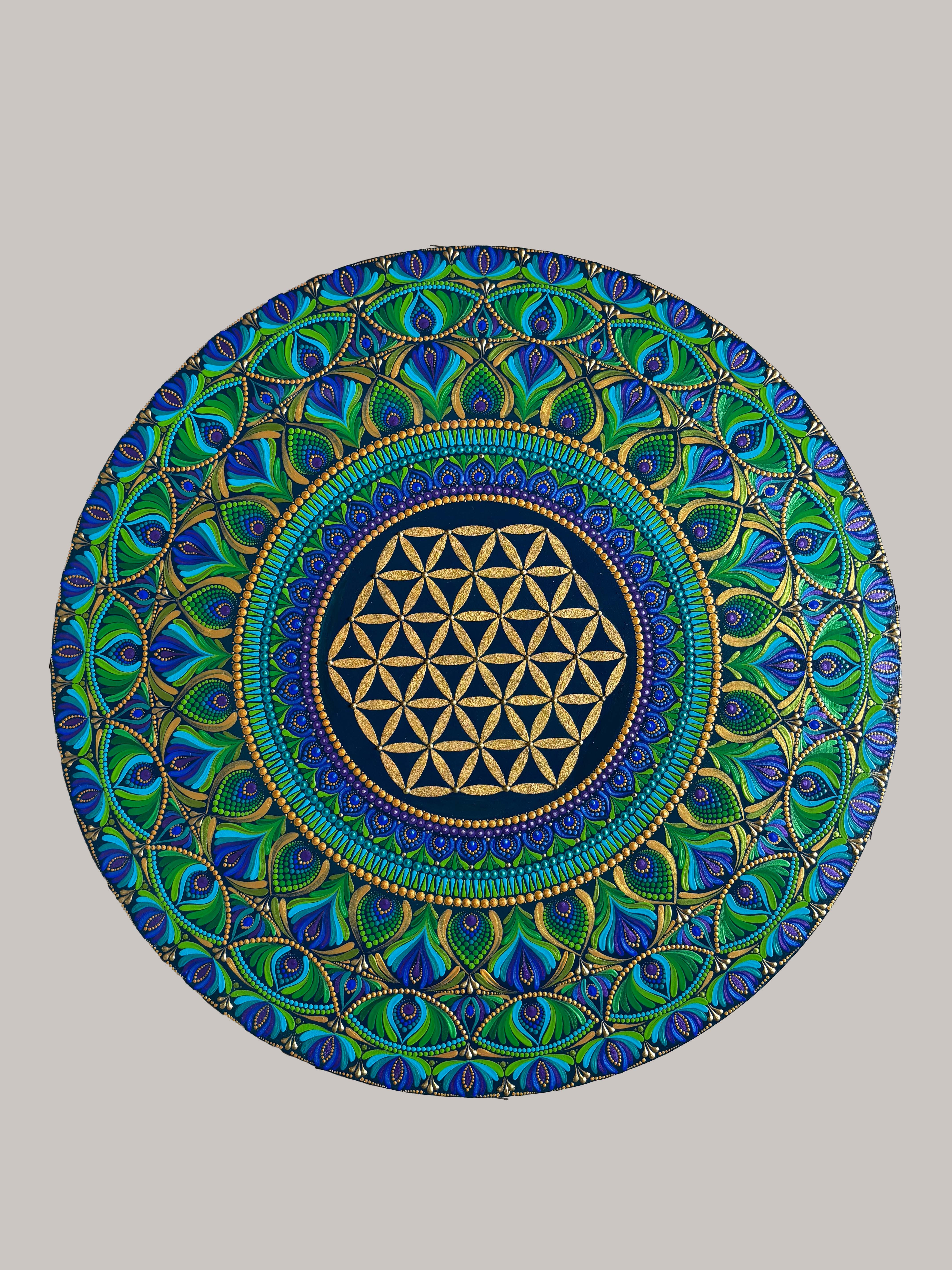 Immerse yourself in the divine energy of the Flower of Life Mandala, a handpainted masterpiece that radiates spirituality and harmony.