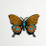 Bring vibrancy and charm into your space with Flutter Joy, a beautifully handpainted mandala butterfly . Featuring bright sunset orange, turquoise, and white dot patterns on a deep black base, this piece celebrates transformation, hope, and the magic of new beginnings.