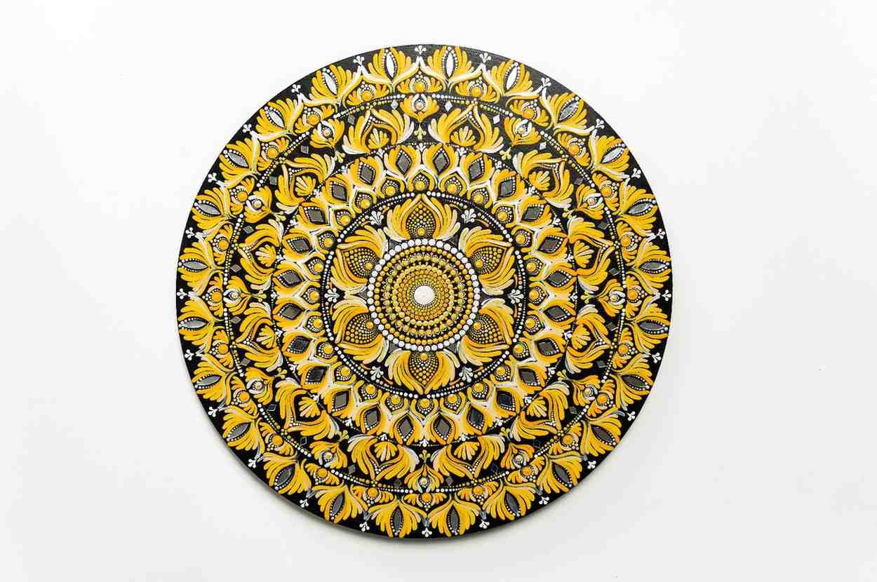 This piece is perfect as a statement wall décor, centerpiece, or spiritual accent in your home radiating positivity, harmony, and artistic sophistication. A celebration of patience, precision, and soulful design, Golden Bloom embodies the healing energy of mandala art.