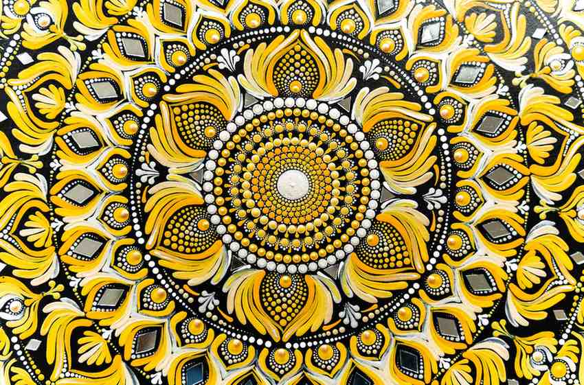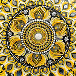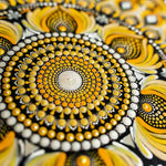 Illuminate your space with the timeless elegance of Golden Bloom, a hand painted dot mandala wall art . Crafted on a deep black base, this artwork blossoms with intricate layers of sunlit yellow, gold, and white petals, symbolizing growth, energy, and enlightenment. Each dot and brushstroke is carefully placed to create a rhythmic balance of beauty and mindfulness.