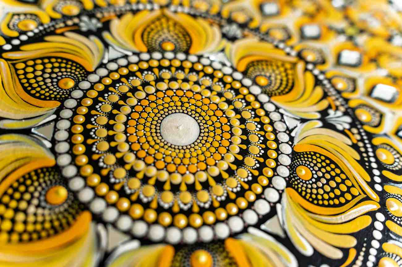 Golden Bloom – Handpainted Dot Mandala Wall Art