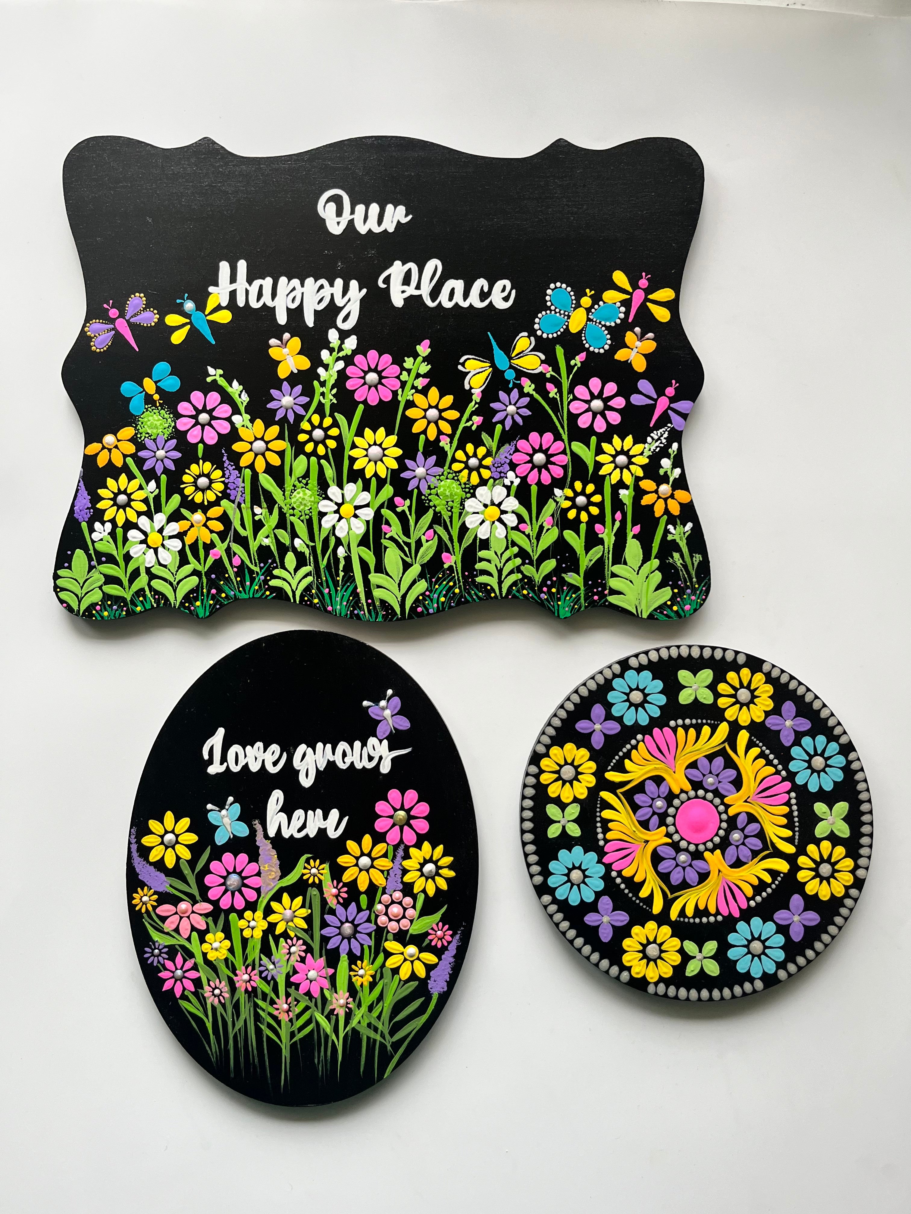 Hand-Painted Floral & Mandala Dot Art Wall Decor – Set of 3