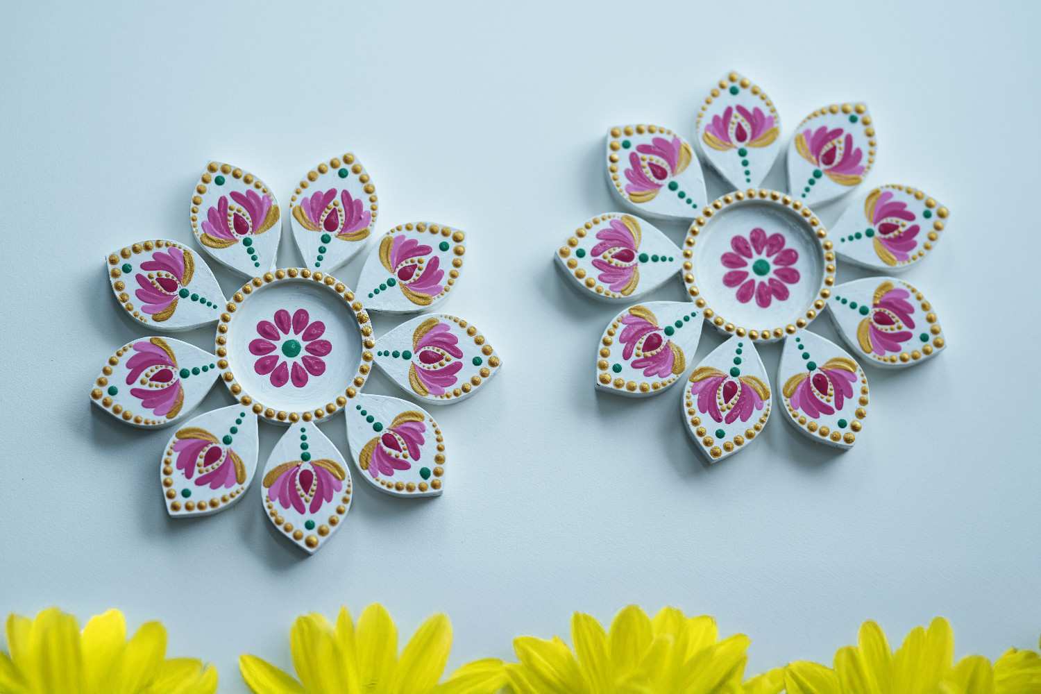 Hand-Painted Lotus Mandala Tealight Holders – Festive Home Decor