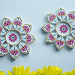 Celebrate the beauty of tradition with this exquisite hand-painted Dot Mandala Tealight Holders crafted in a blooming lotus-inspired mandala design. Each petal is carefully detailed in vibrant pink, green, and gold accents, creating a radiant and festive centerpiece.