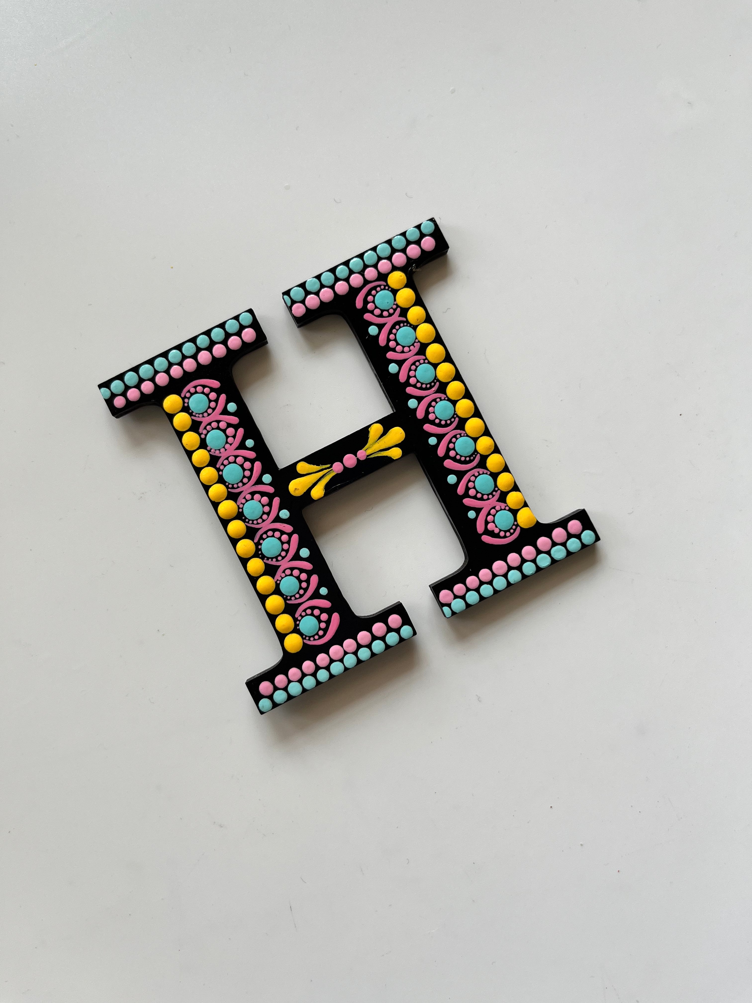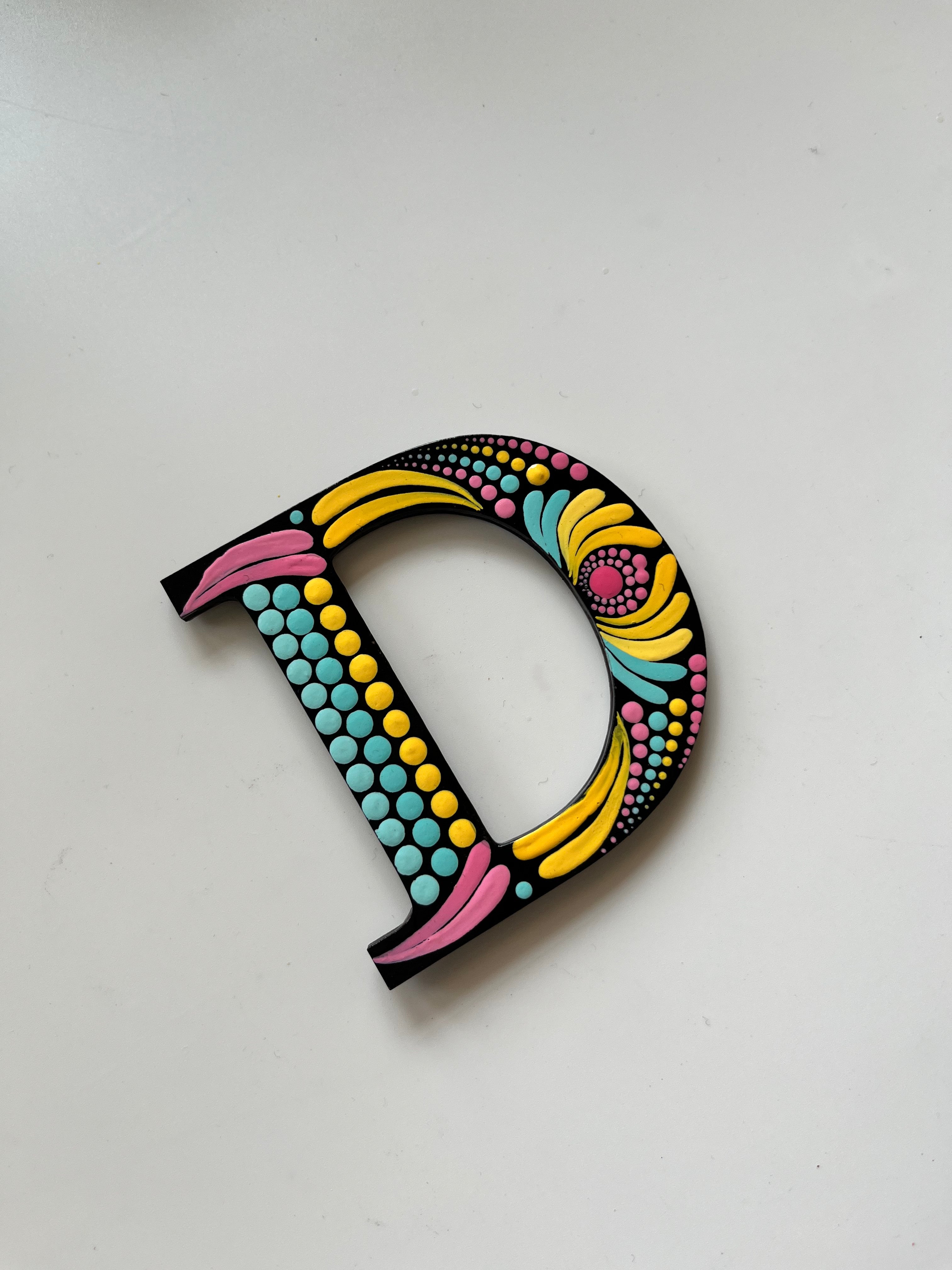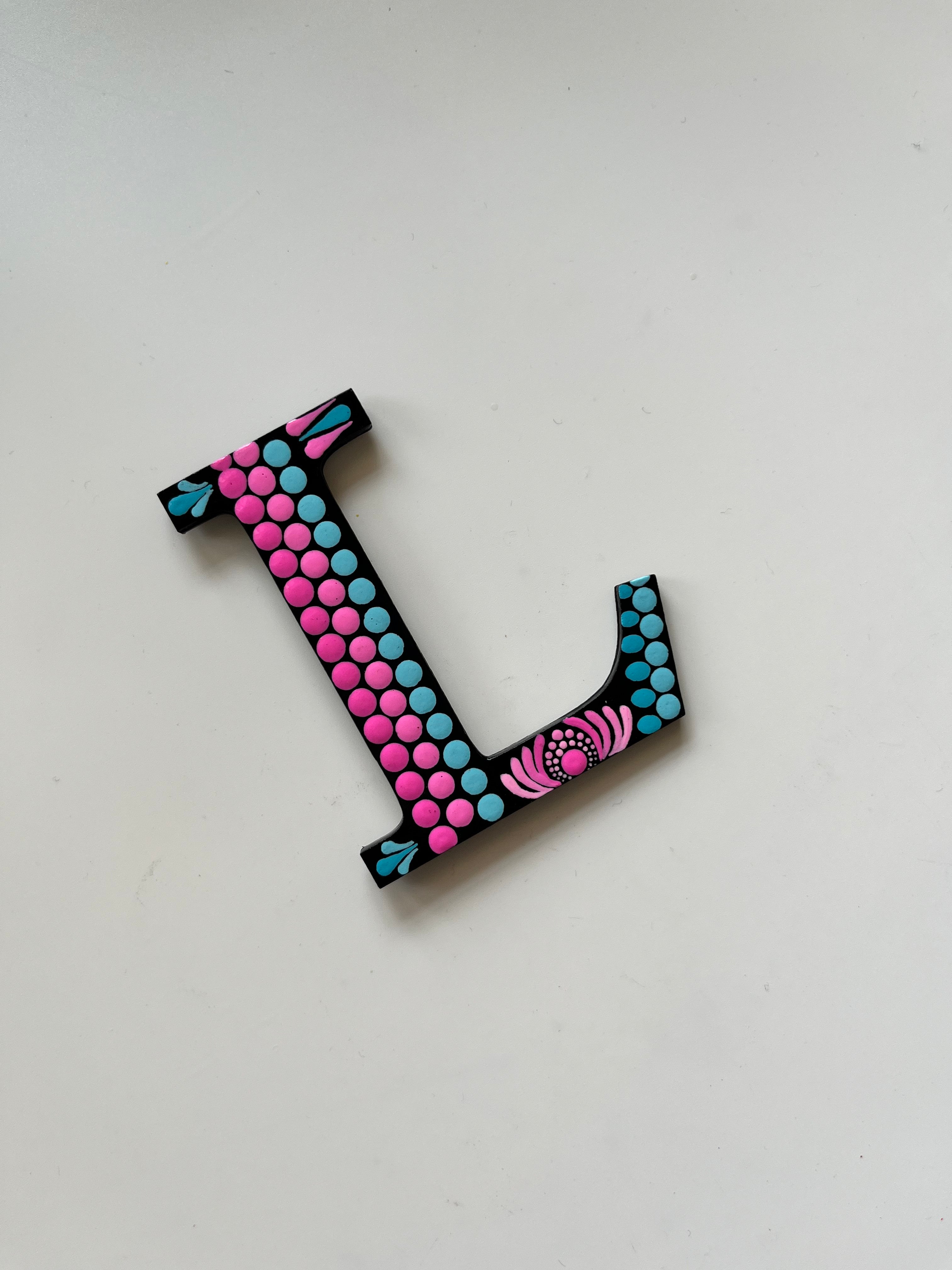 Add a personalised touch of art to your space with this hand painted Dot Mandala Art Alphabet ‘A to Z’.
