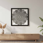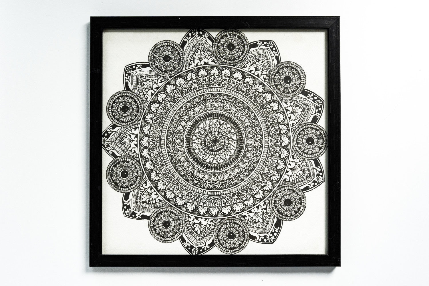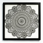 Every section is filled with intricate floral and geometric elements, woven together through thousands of delicate pen strokes. The monochrome palette enhances the depth and texture, making this artwork a perfect statement piece for art lovers who appreciate detail-rich, meditative creations.