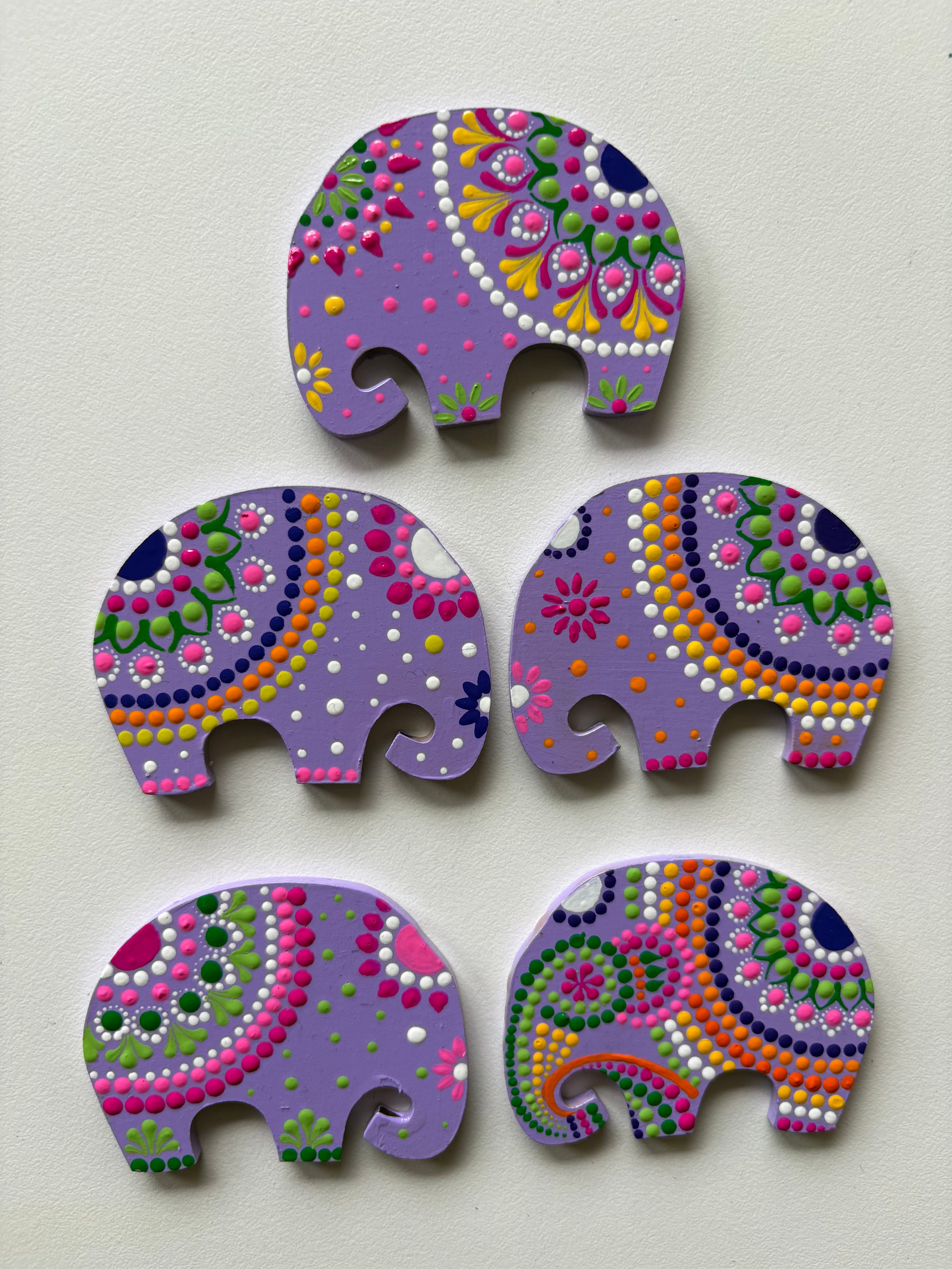 Lavender Bliss Elephants – Hand-Painted Mandala Dot Art Magnets