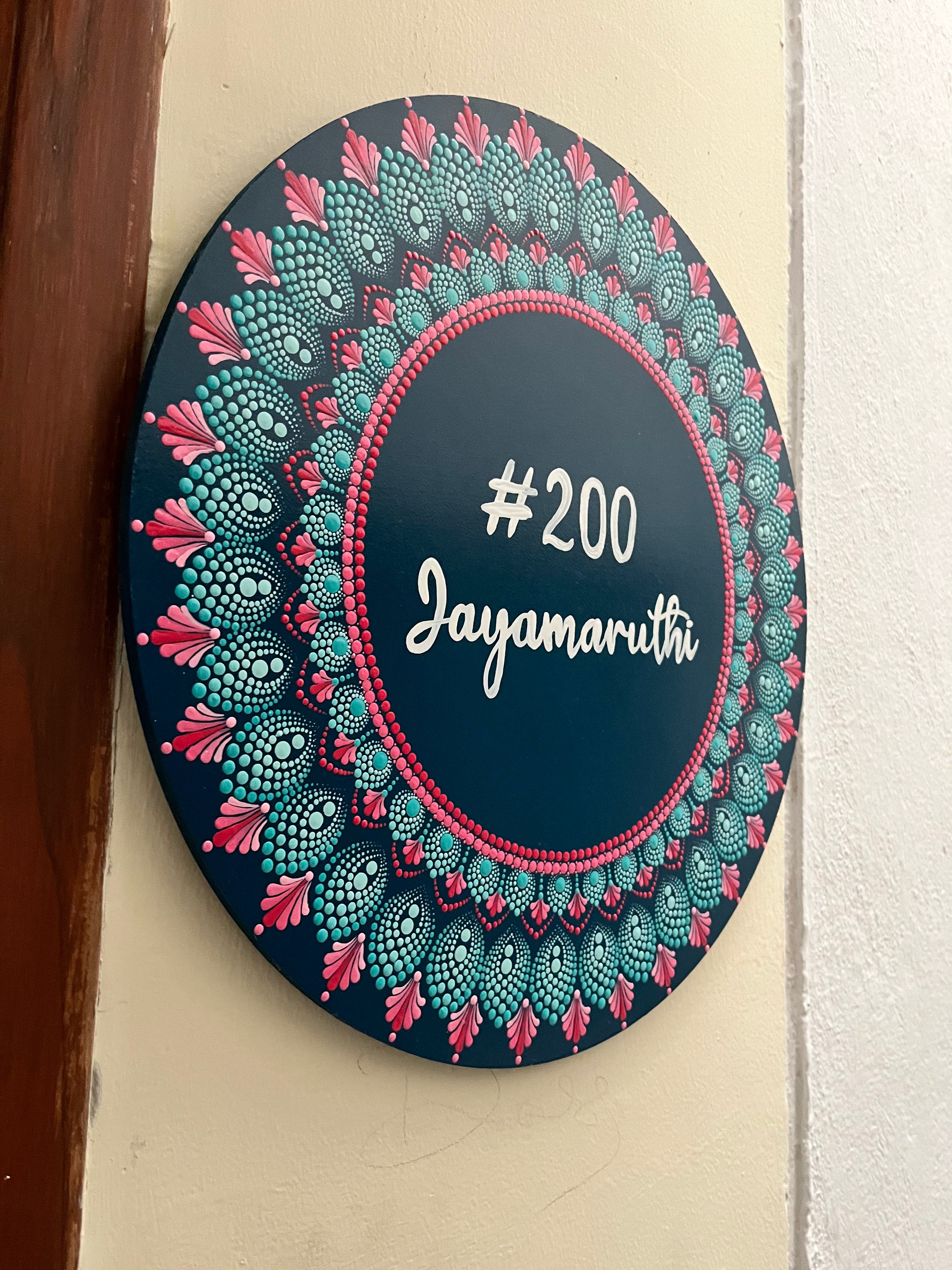 Add a touch of elegance and vibrance to your home entrance with our Turquoise & Pink Dot Mandala Nameplate – a striking hand-painted piece that blends intricate artistry with bold, contemporary colors.