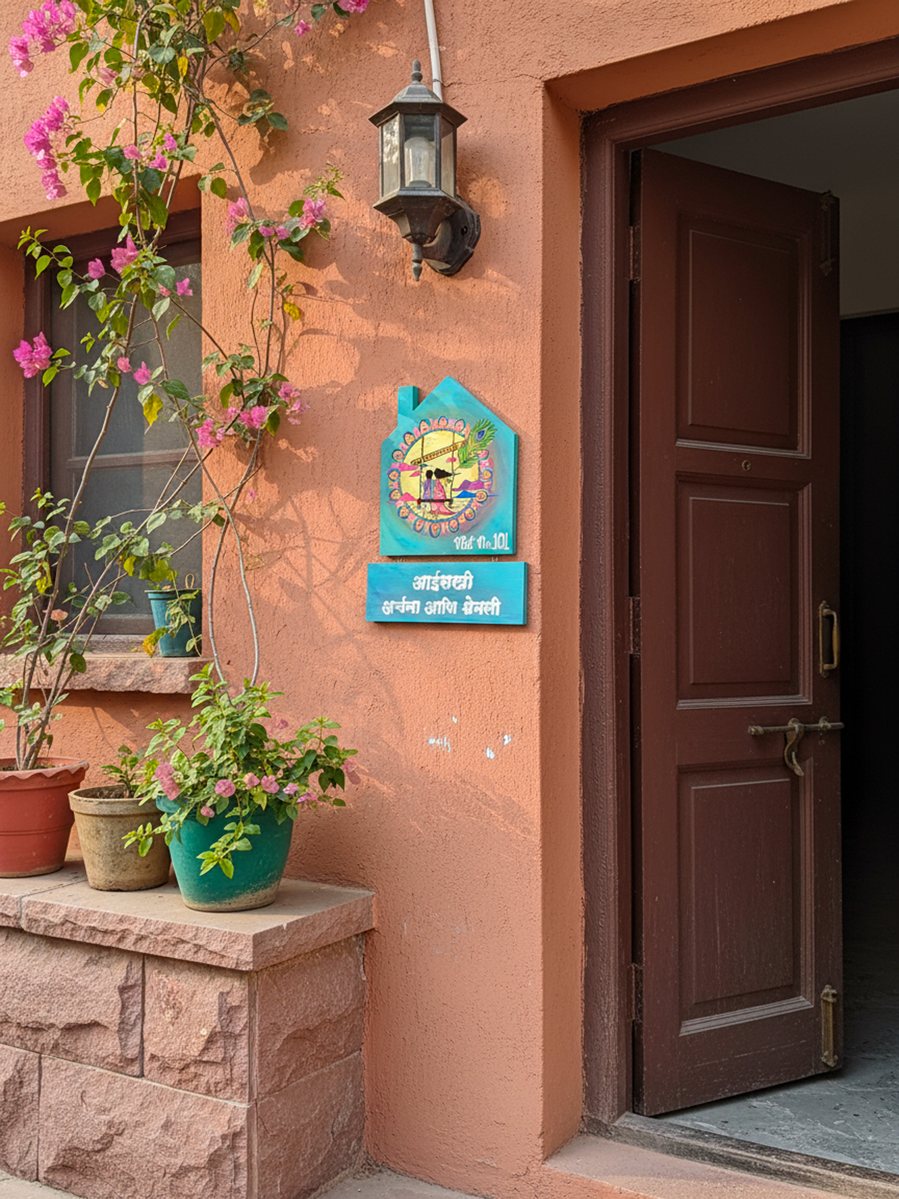 Perfect for adding a personalized artistic touch to your home entrance, this nameplate blends tradition with modern vibrance.