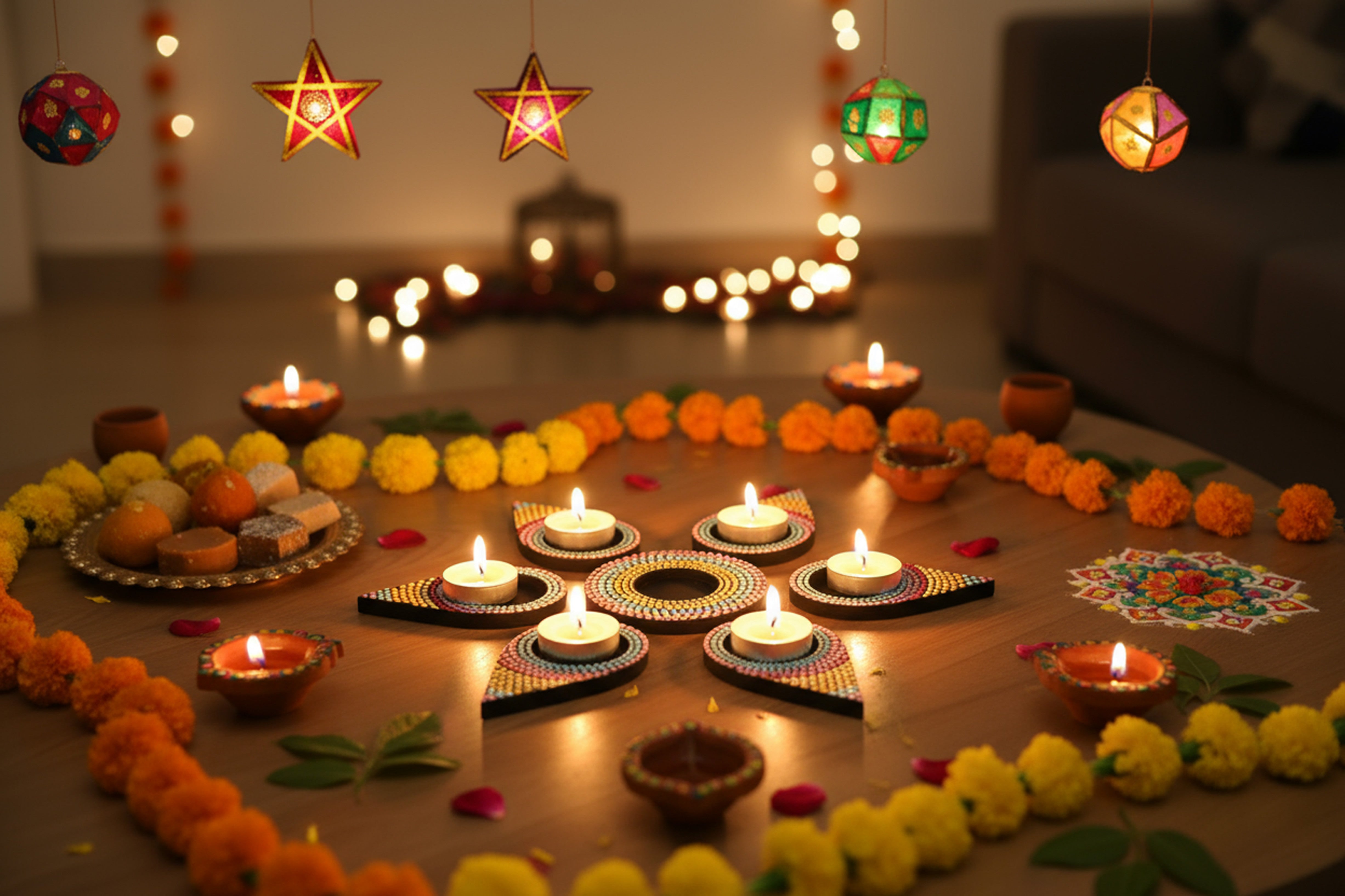 Pink Blossom Dot Mandala Tealights Holders – Handcrafted Festive Lighting