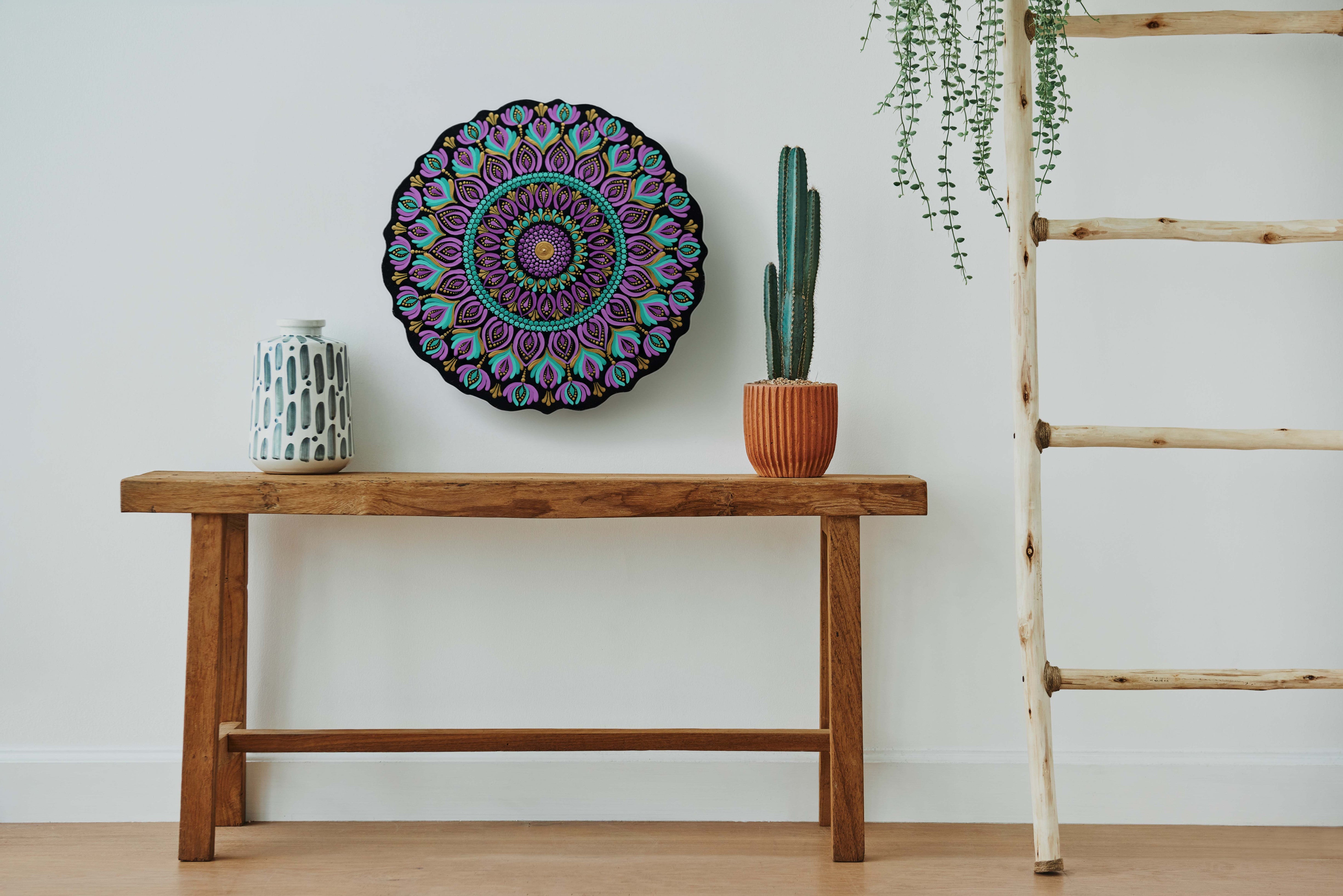 The scalloped edge of the MDF base enhances its unique appeal, making it more than just wall art—it’s a statement piece. Perfect for adding a touch of spiritual elegance to your living room, meditation corner, or entryway, this mandala evokes positivity, peace, and artistic charm.