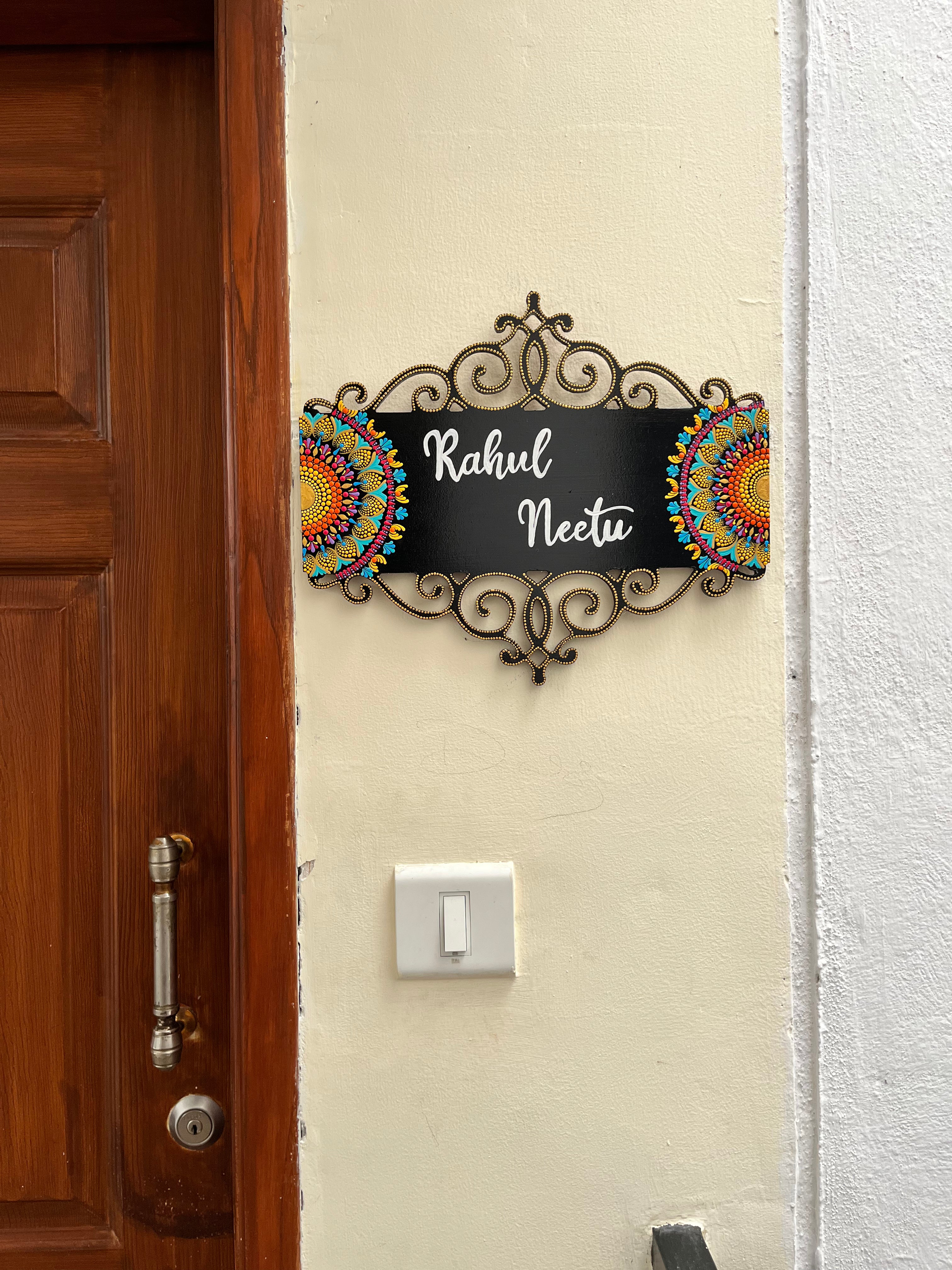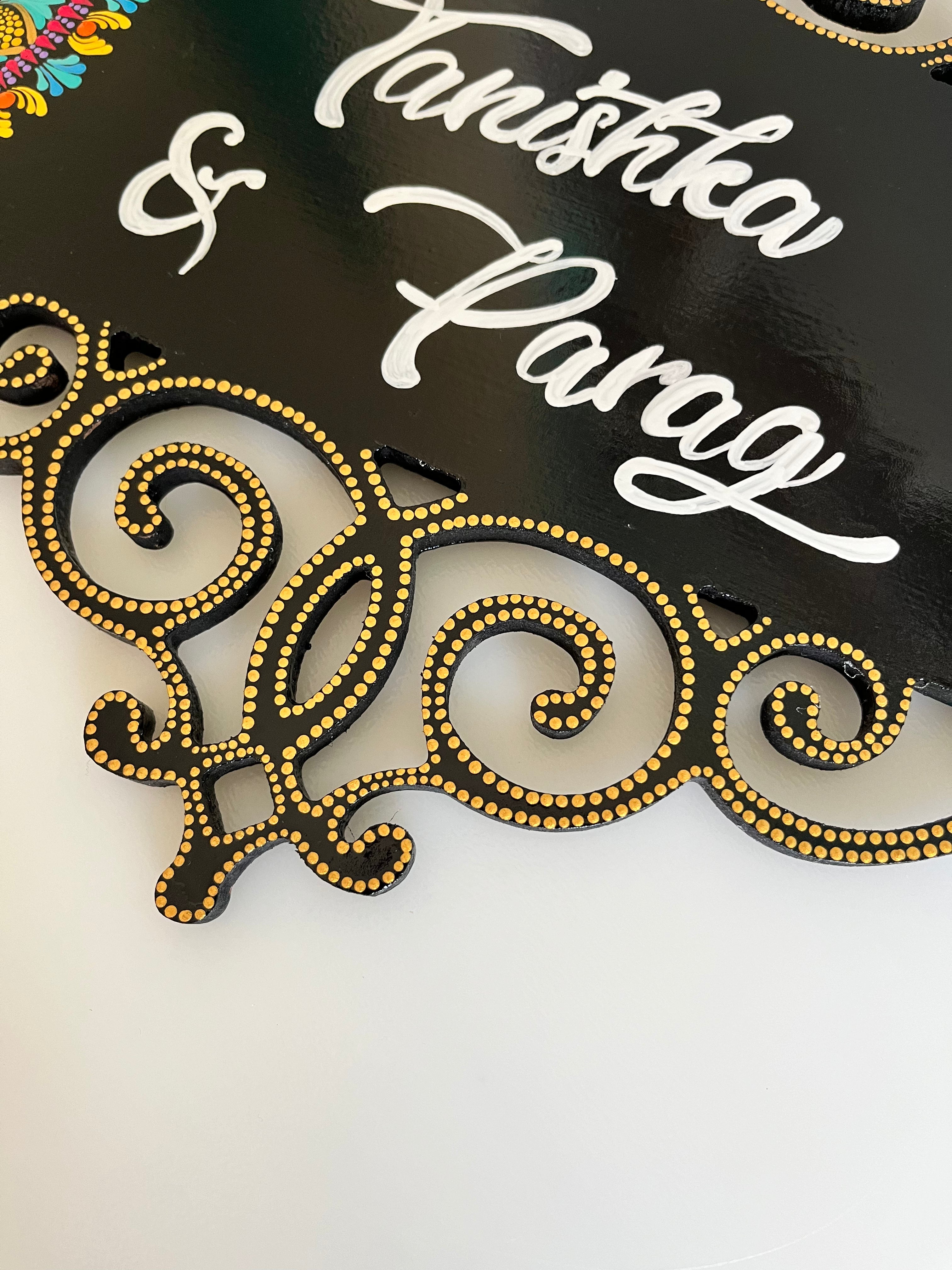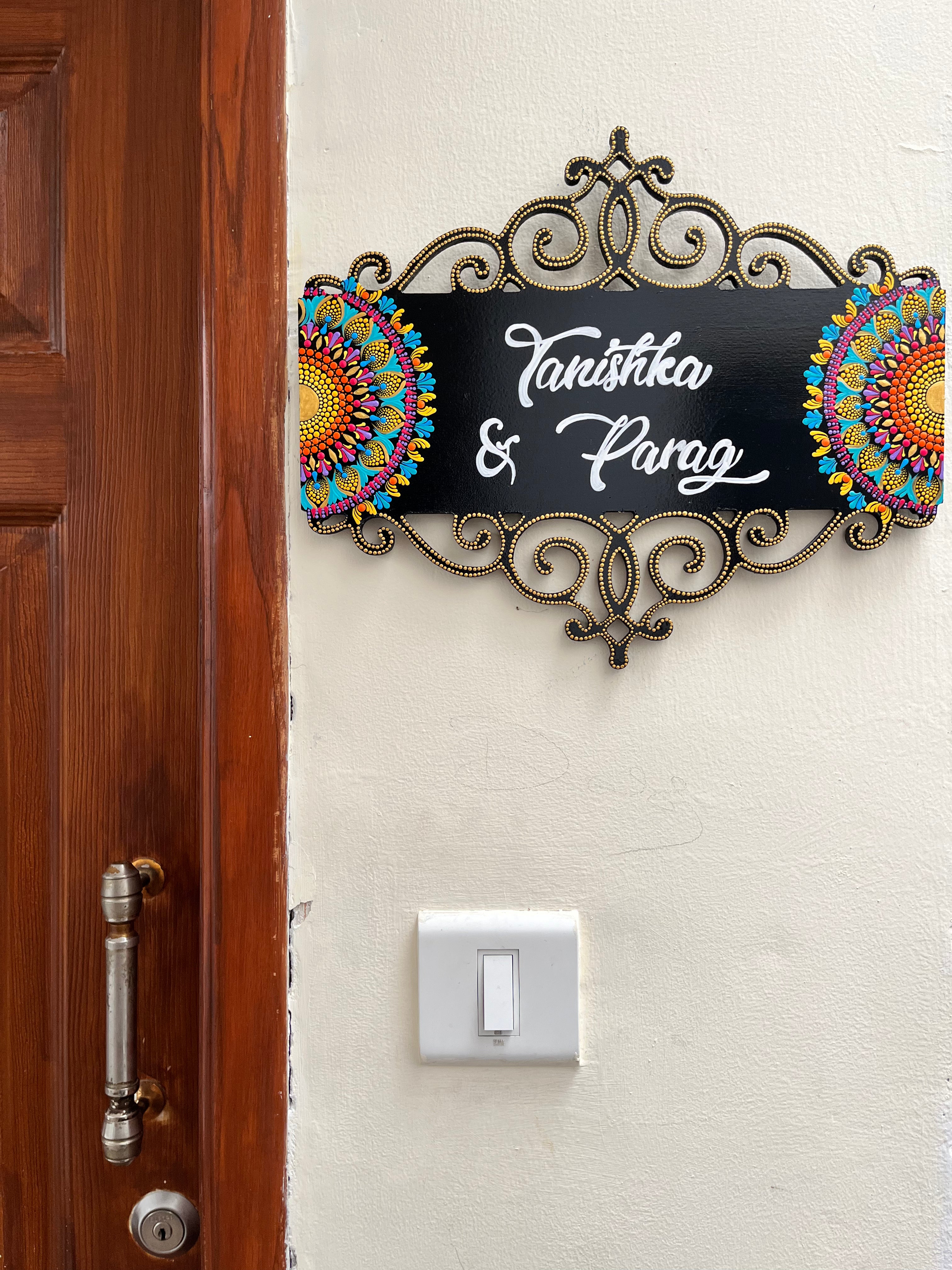 Make a bold and beautiful first impression with this Black & Gold Accented Cutwork Nameplate with Colorful Dot Mandalas – a celebration of colors, culture, and craftsmanship.