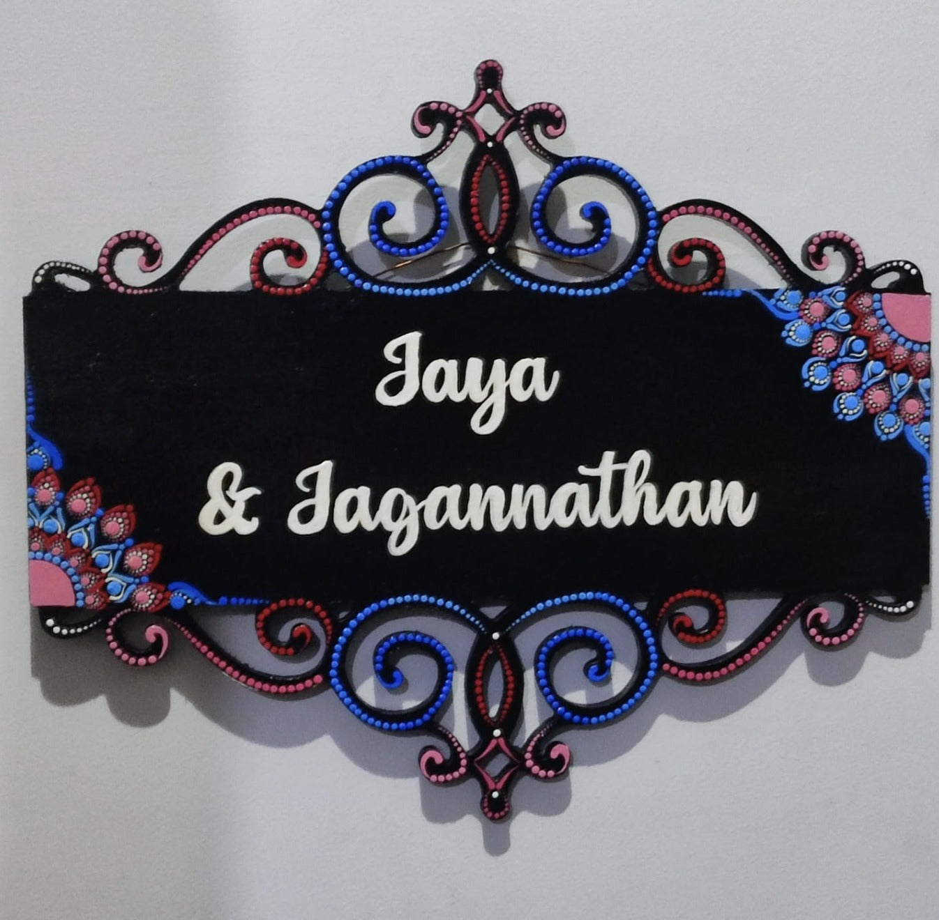 Sleek, stylish, and timeless, this Minimal Corner Dot Mandala Cutwork Nameplate puts your family name at the forefront while adding just the right touch of artistic flair.