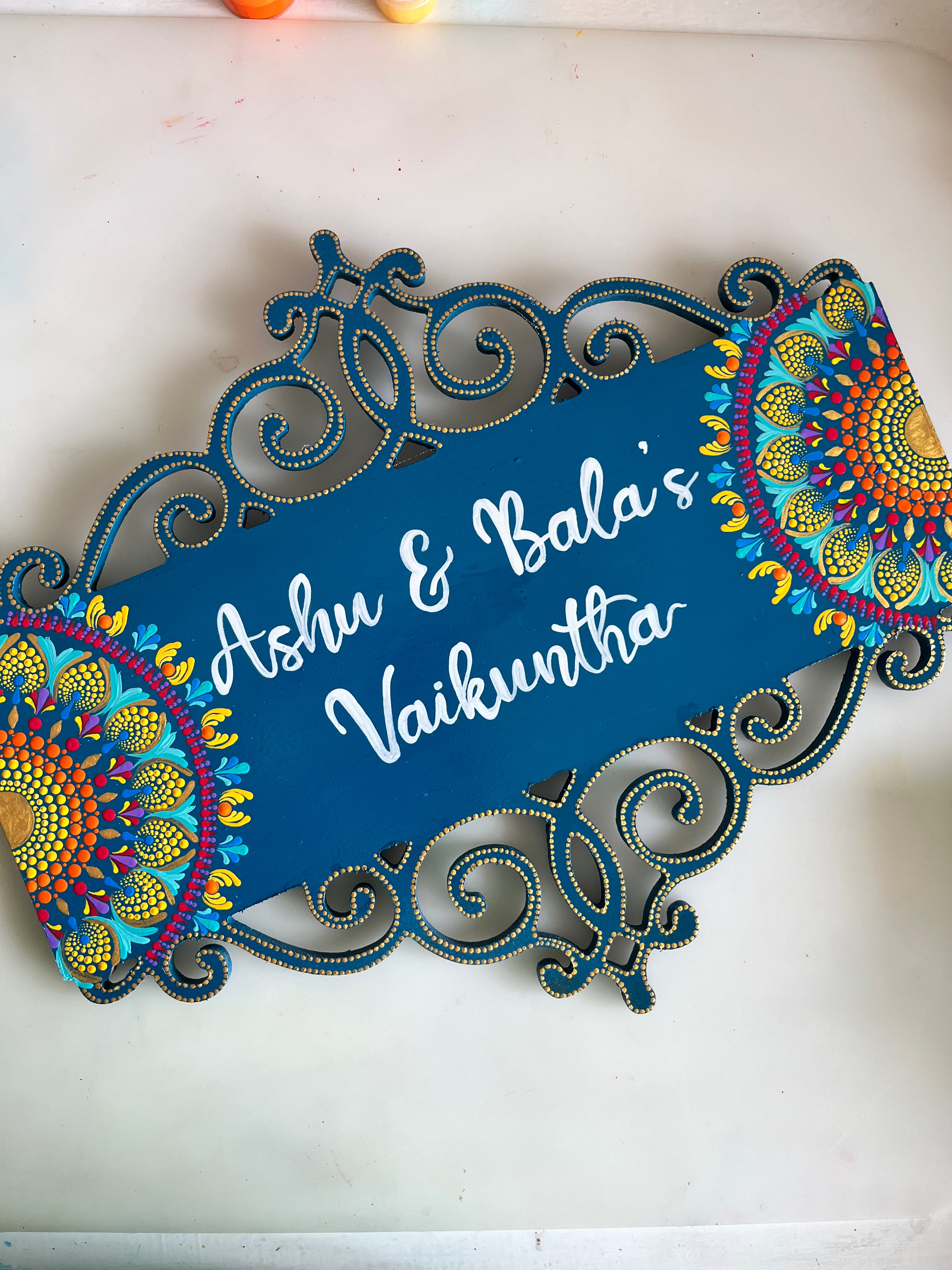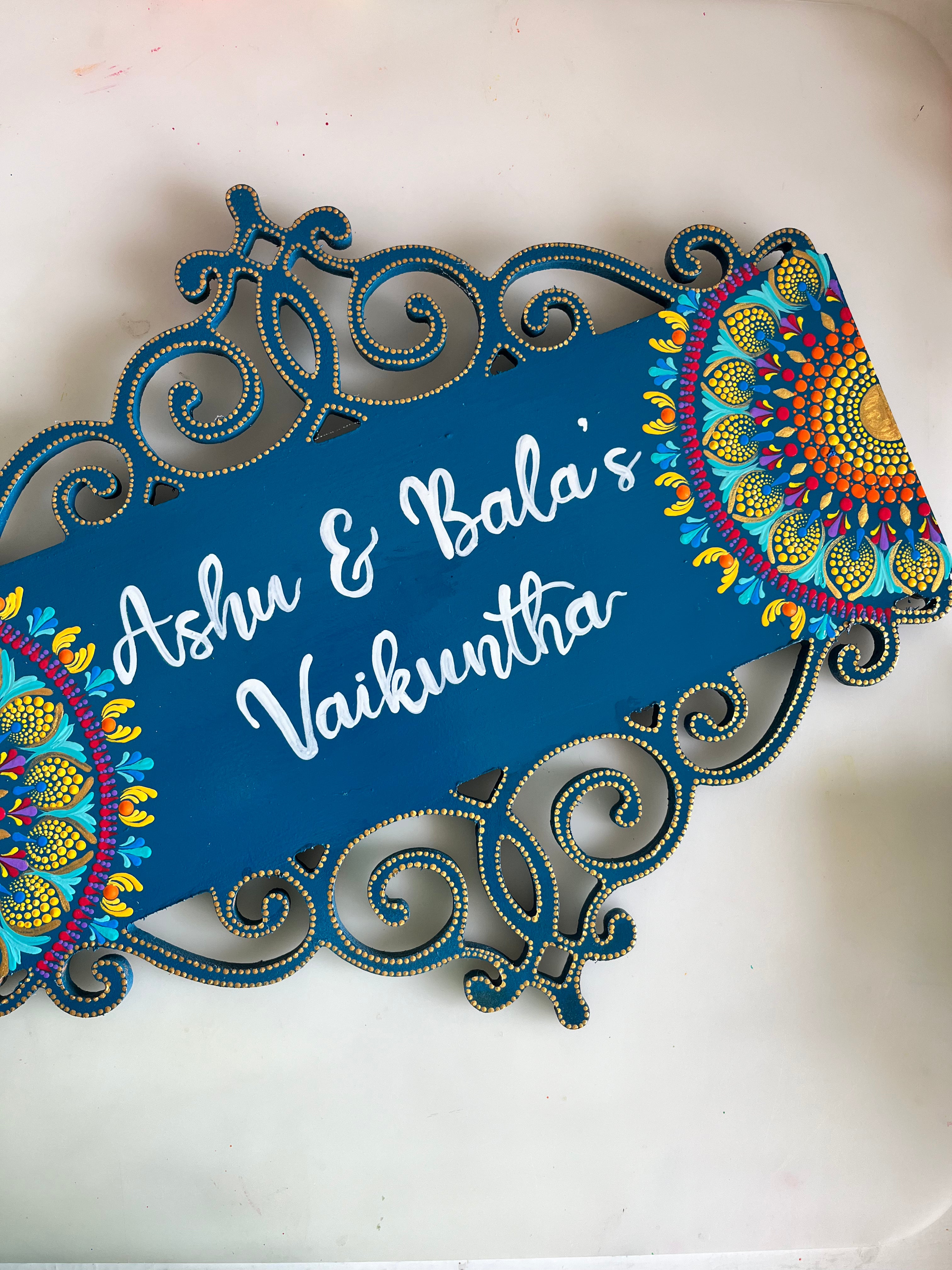 Turquoise Semi- Dot Mandala Cutwork Nameplate – Customizable