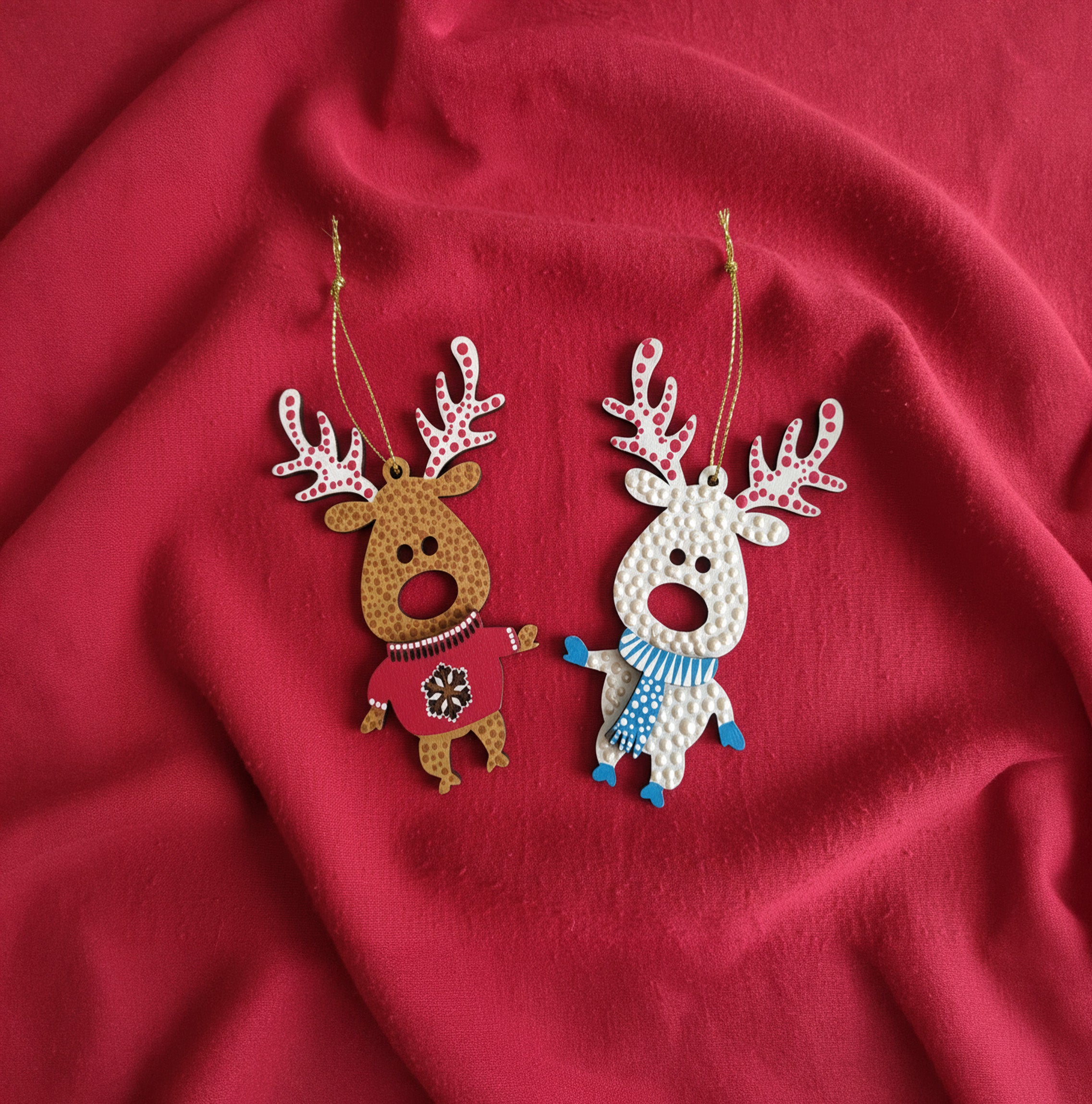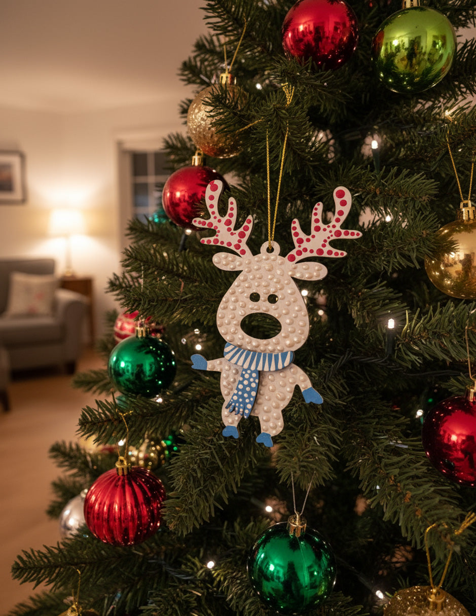 Bring home the festive spirit with these adorable Reindeer Mandala Ornaments . Each reindeer is lovingly hand painted using the intricate dot mandala technique, dressed in cozy winter sweaters and scarves that capture the joy of the season. With warm brown and snowy white tones, these ornaments make the perfect companions for your Christmas tree, holiday décor, or handmade gifting.