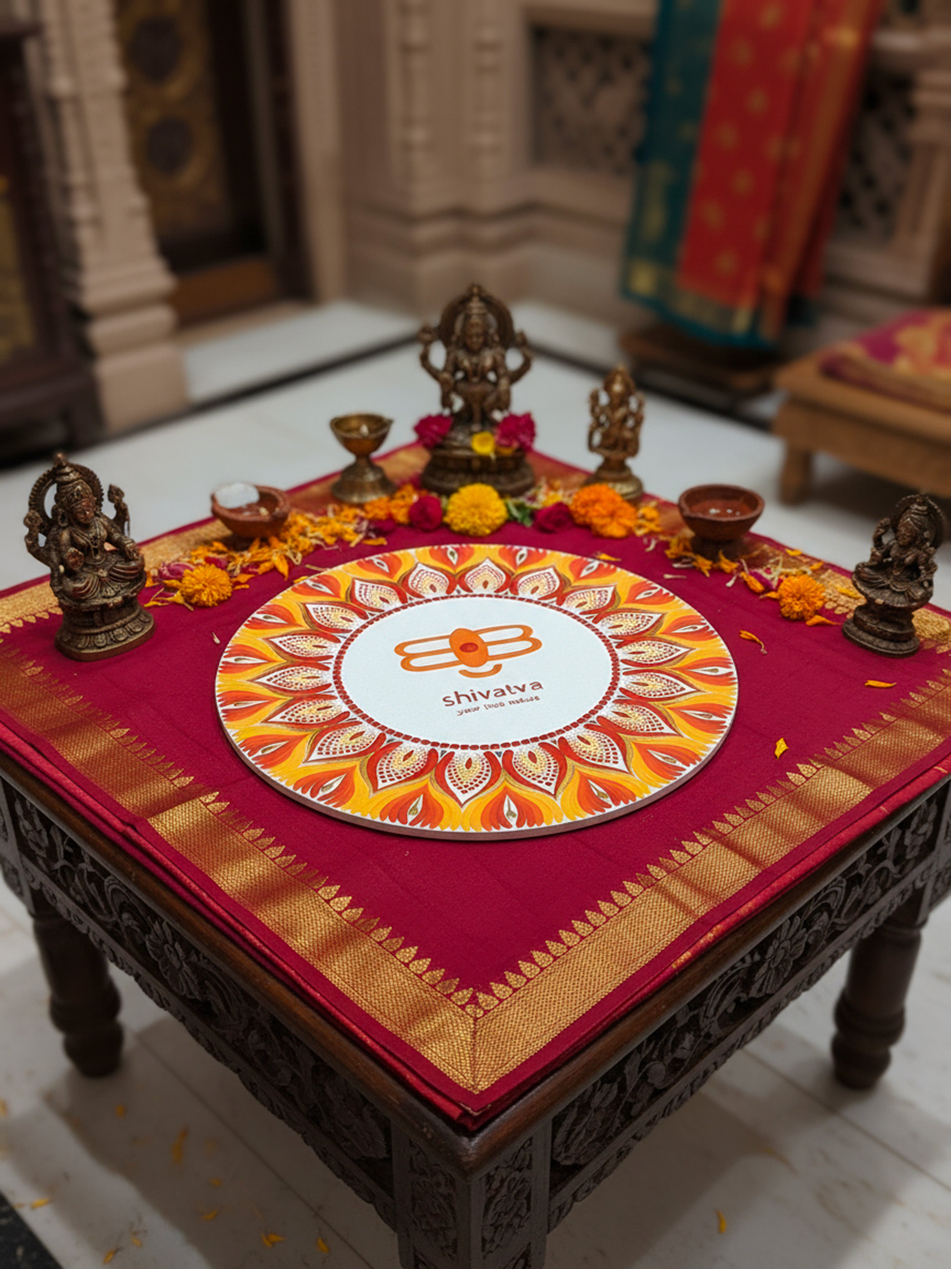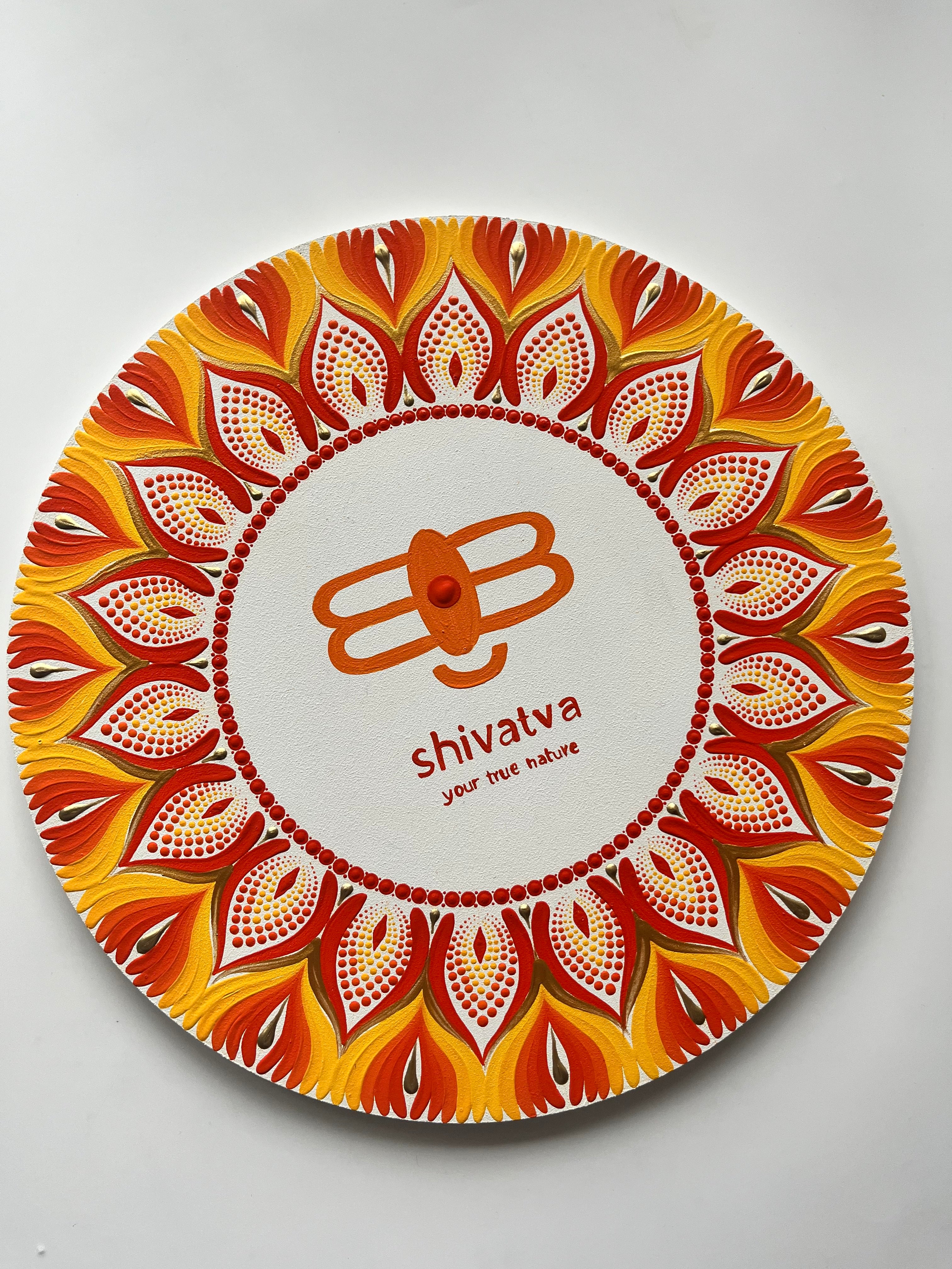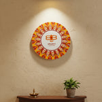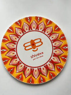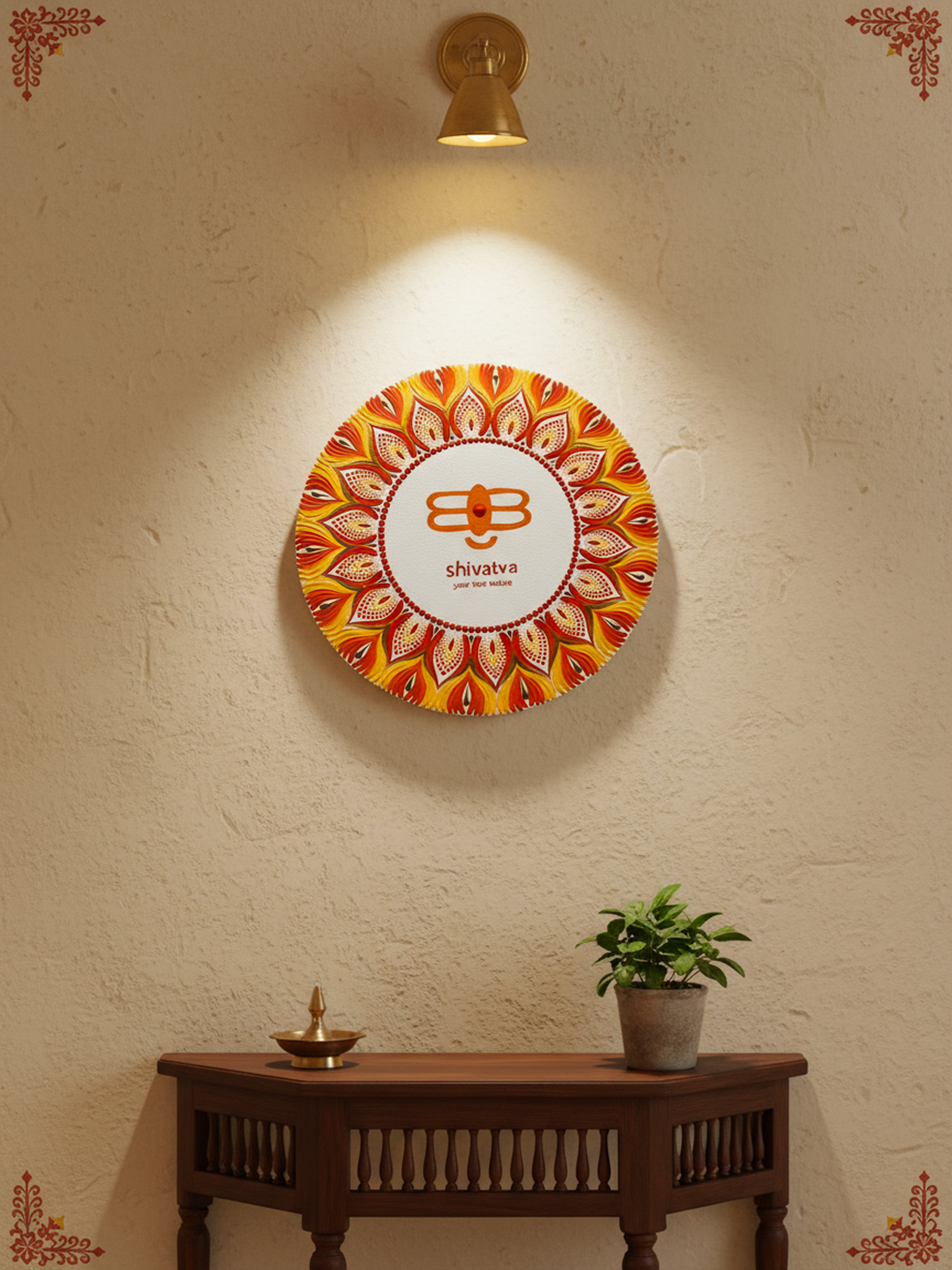 This stunning hand-painted mandala wall plate beautifully blends spirituality with intricate artistry. Featuring the sacred Shivling symbol at the center and surrounded by fiery orange, red, and yellow mandala petals, the artwork radiates divine energy and strength. Created using the traditional dot mandala technique on MDF, each detail is meticulously painted, symbolizing devotion, positivity, and transformation.