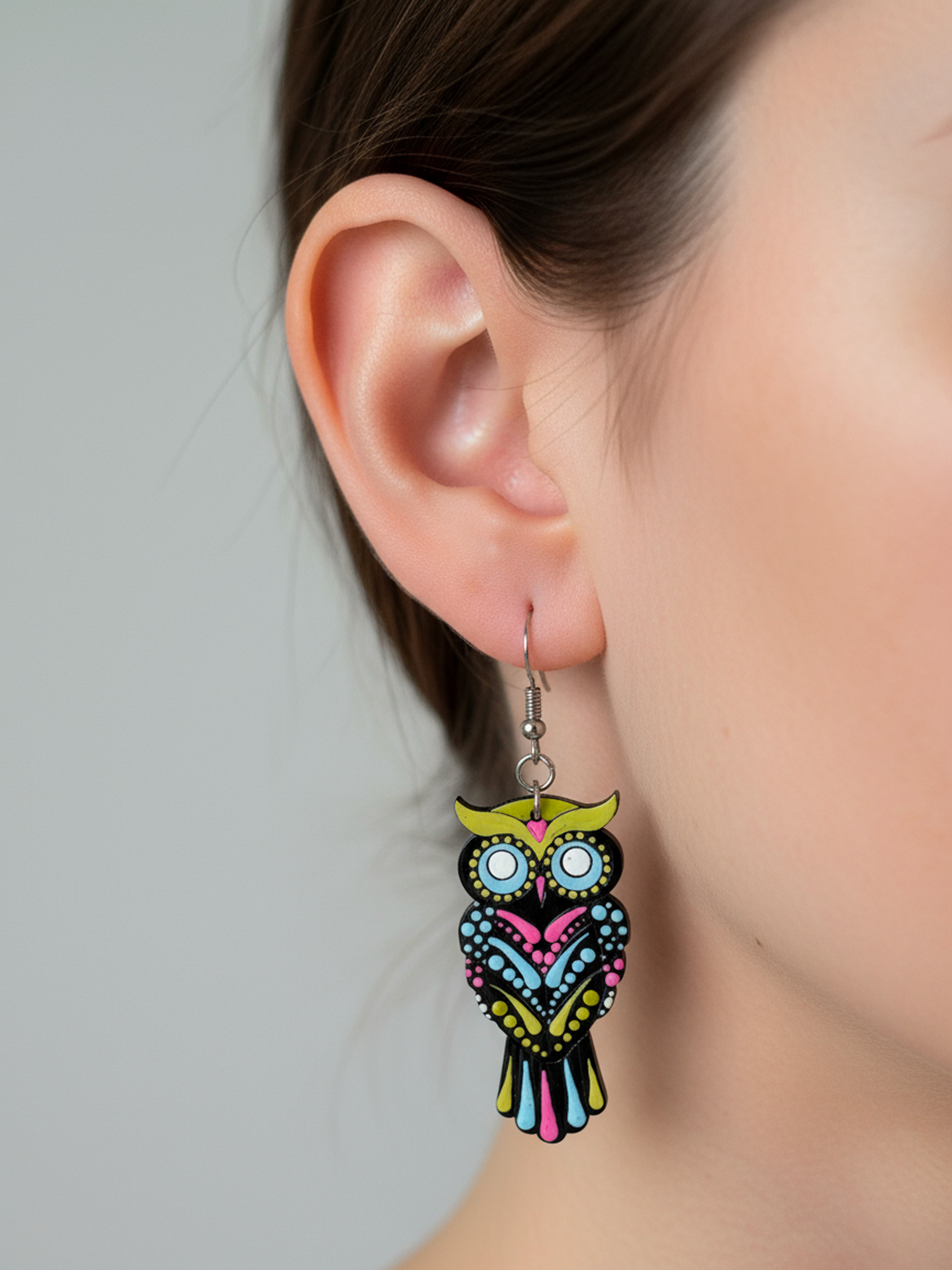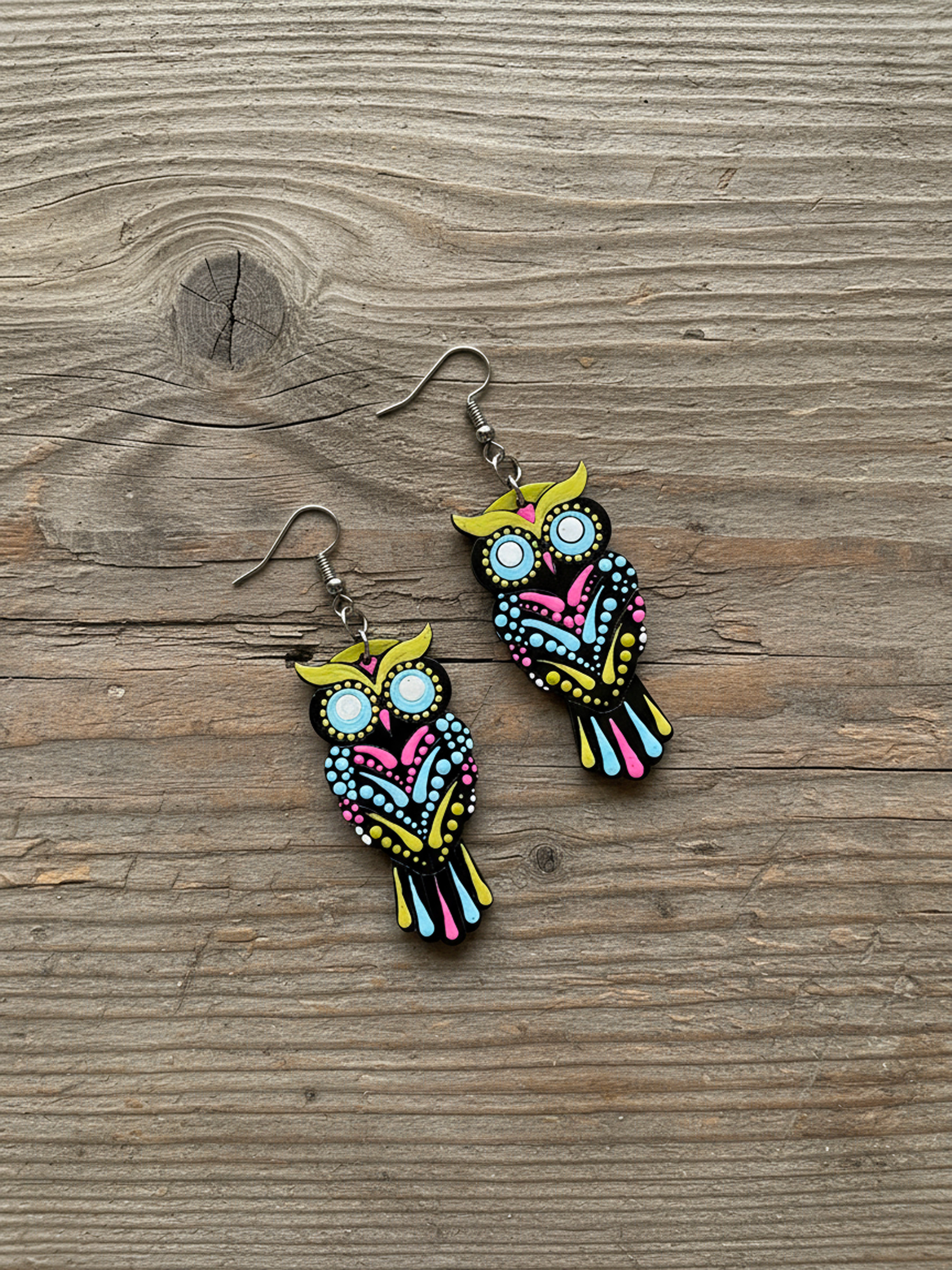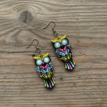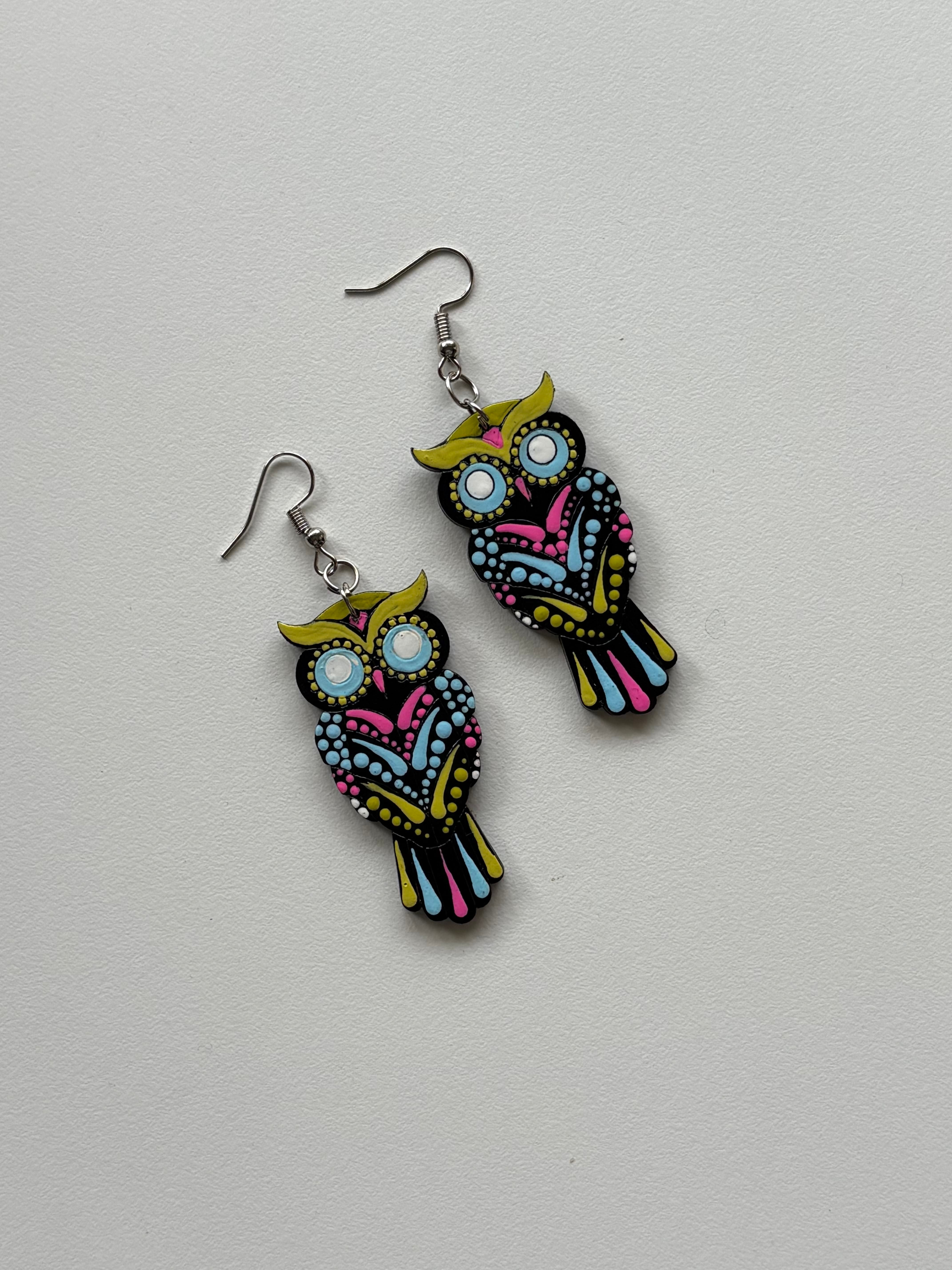 Vibrant Owl Mandala Earrings – Handpainted Boho Charm
