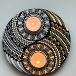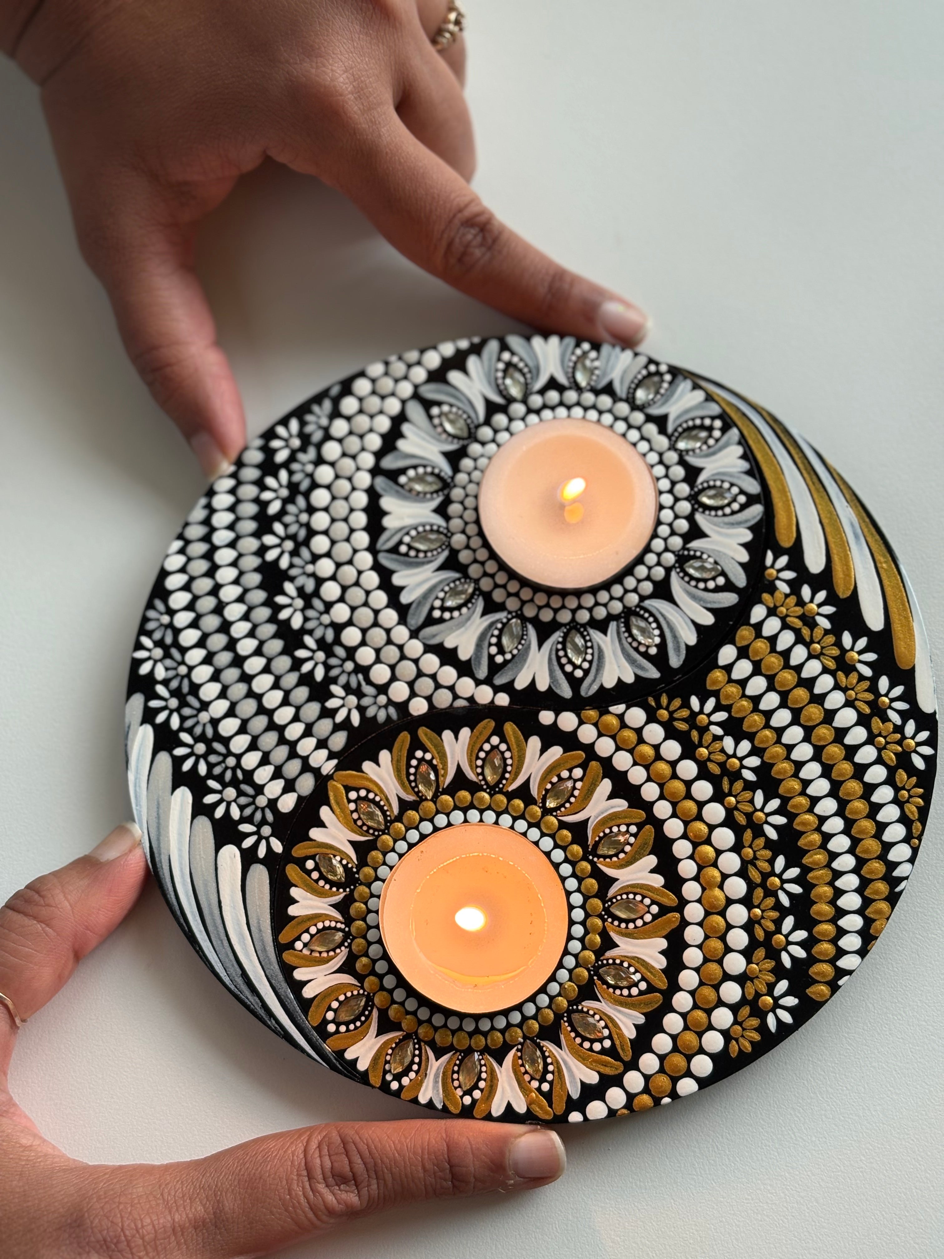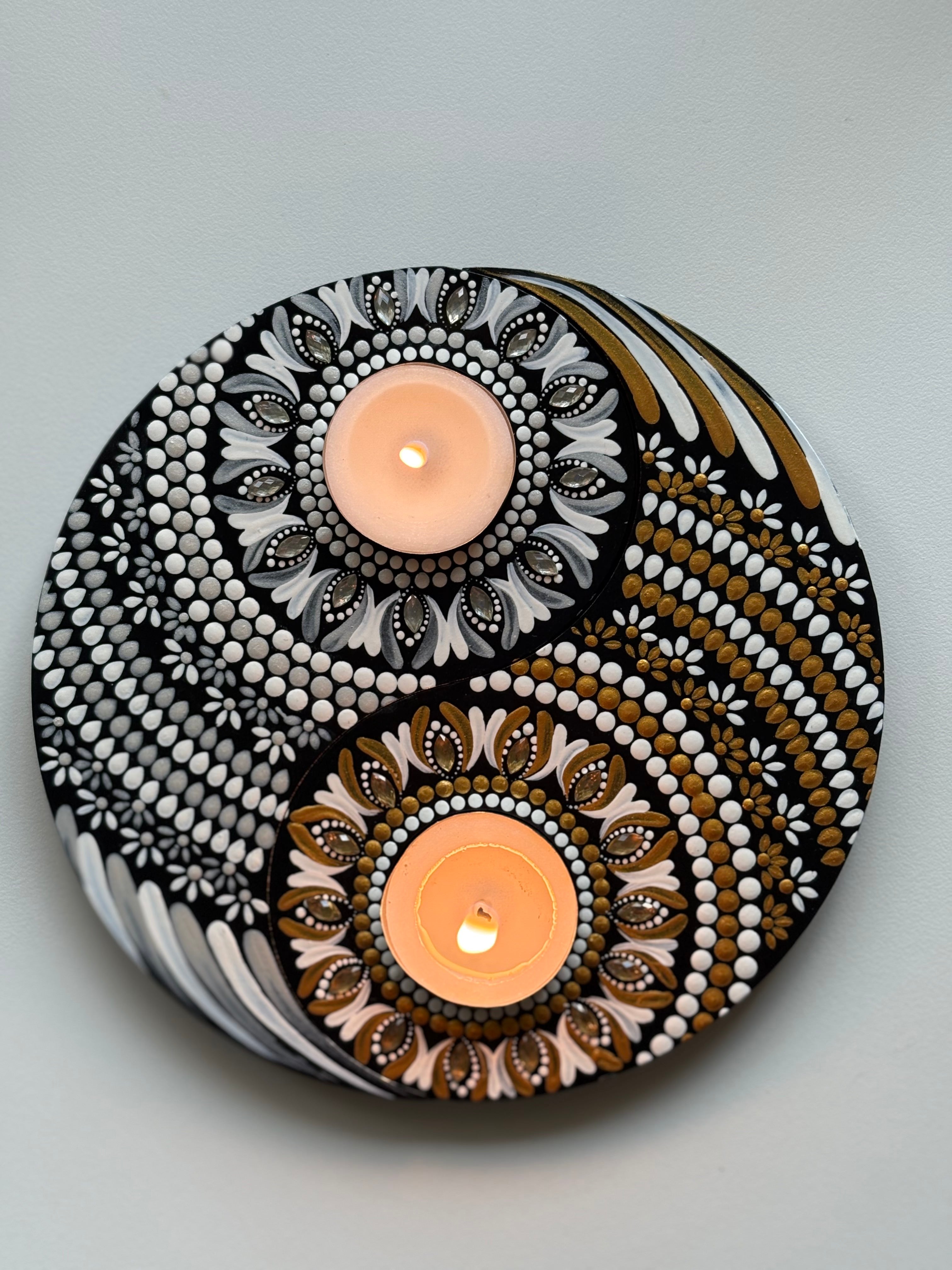 Yin Yang Balance – Hand-Painted Mandala Dot Art Tealight Holder